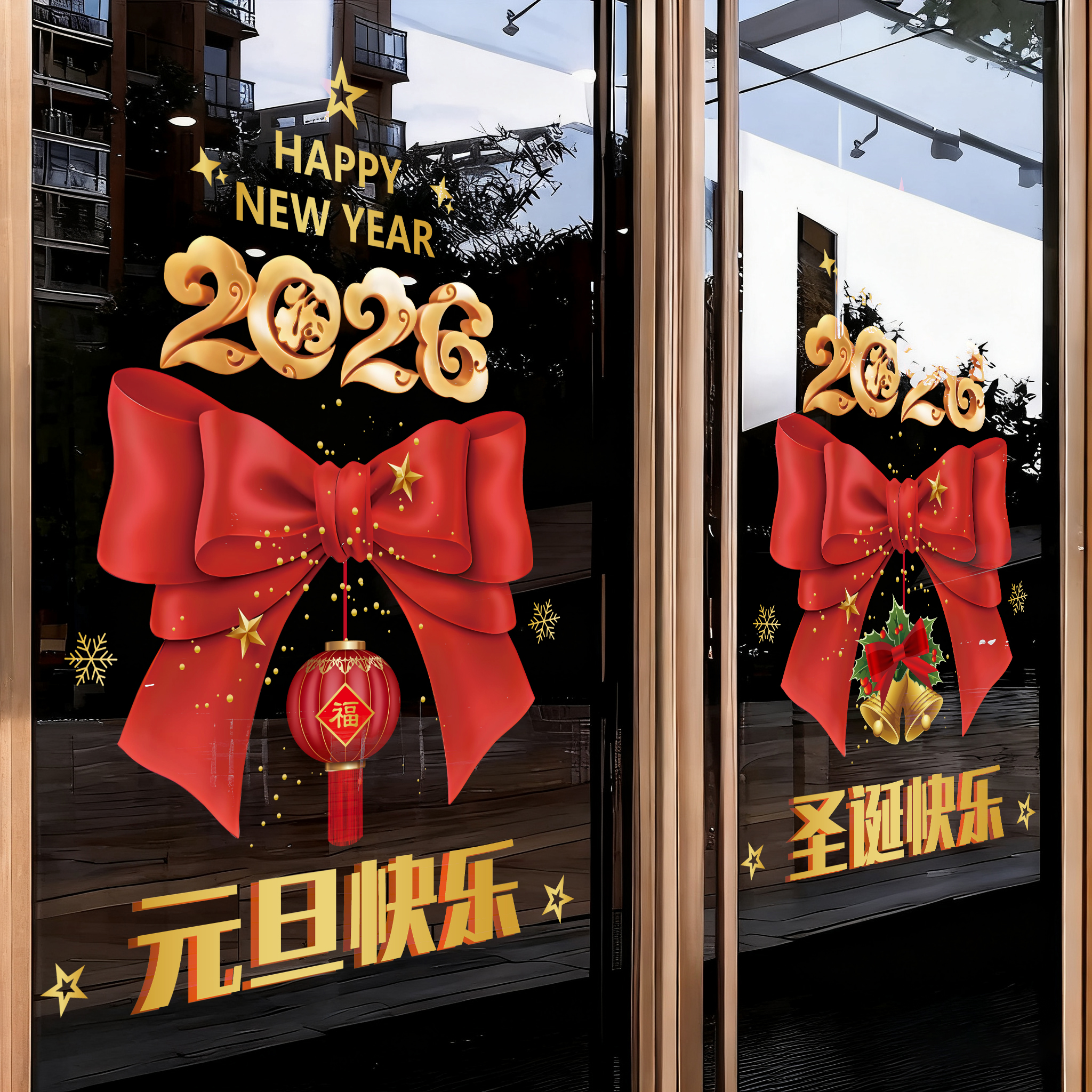 圣诞元旦同乐窗花贴布置静电无胶