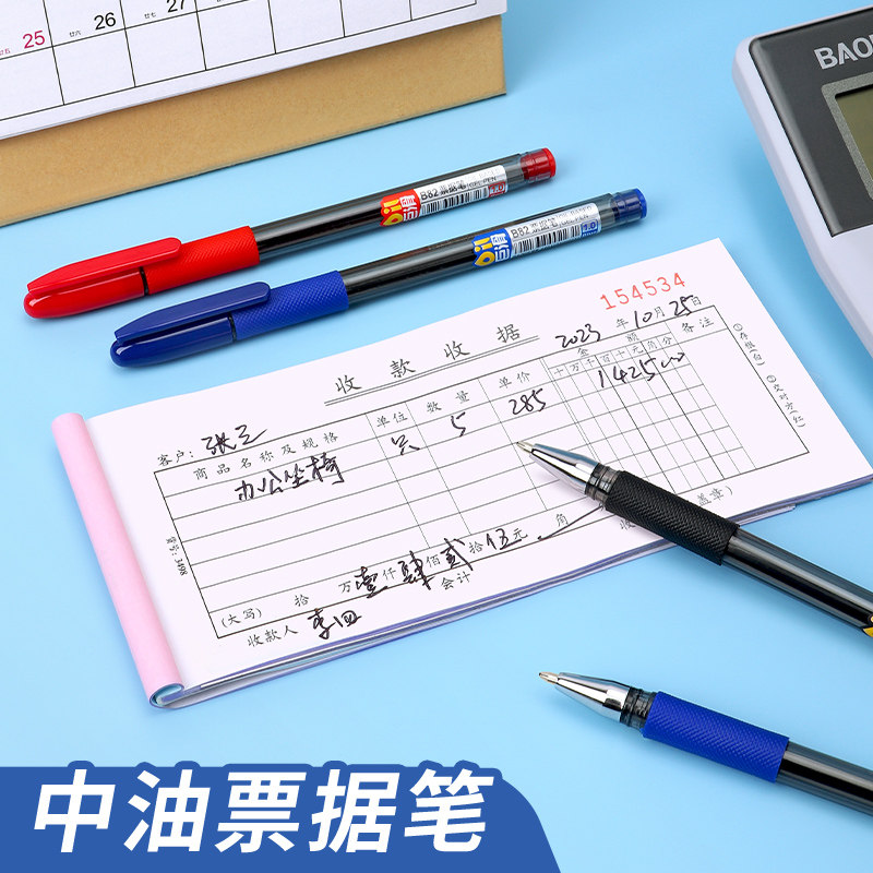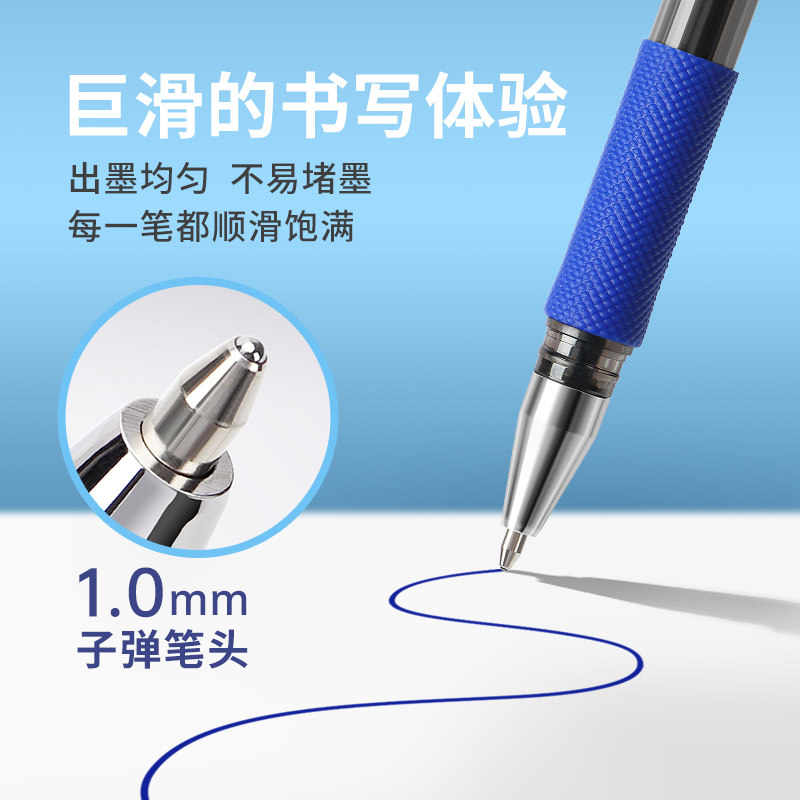 宝克1.0mm圆珠笔蓝色油性中油笔黑色笔芯学生顺滑圆珠笔中油票据笔油性笔红色油笔拔帽式原子笔教师红笔专用