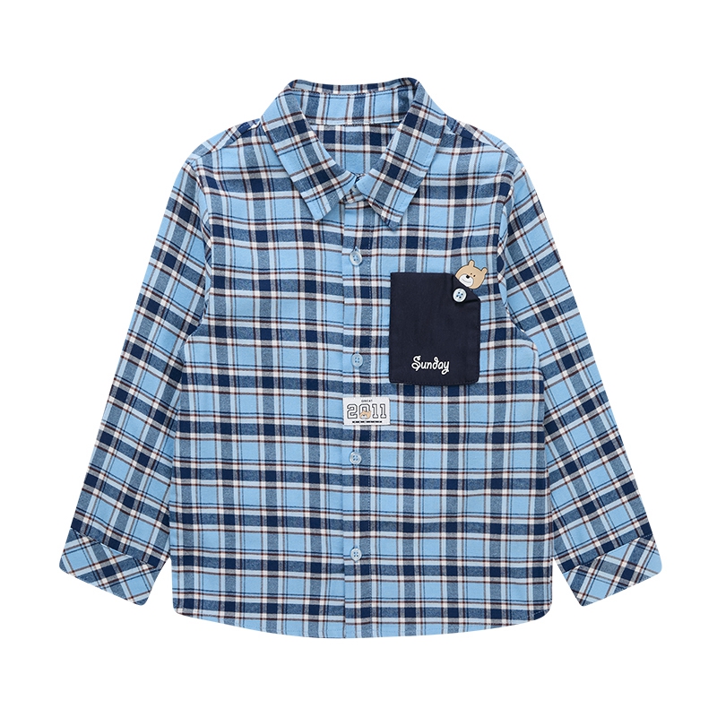 歌瑞家儿童衬衫春秋款翻领长袖衬衣小童男童色织格乐友