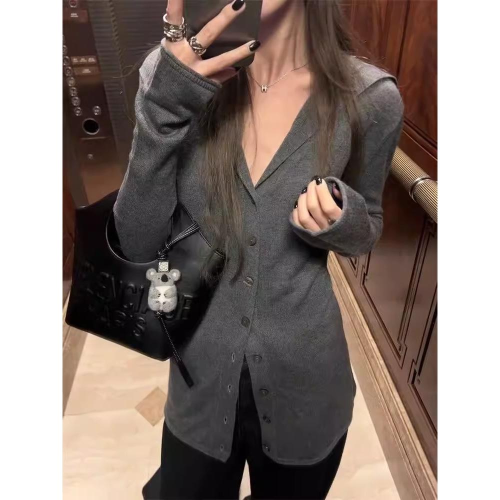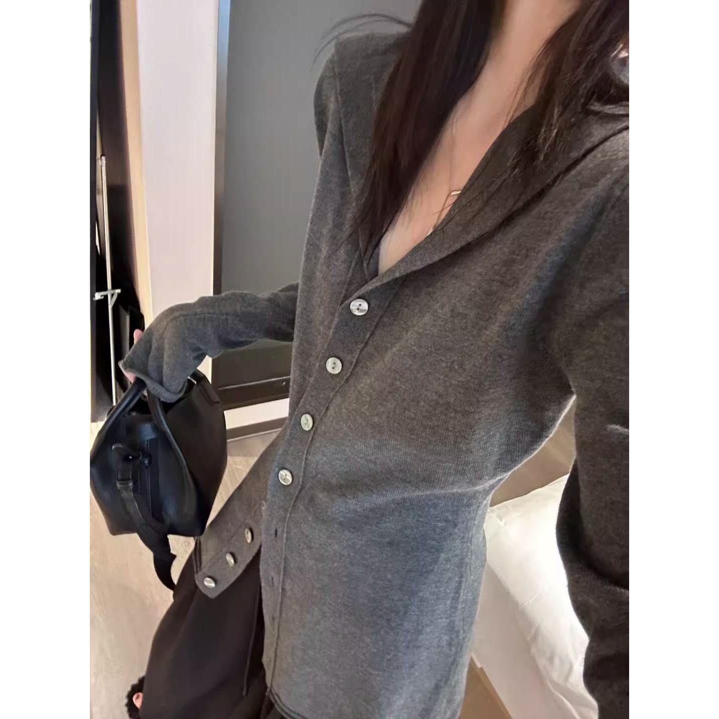 灰色针织开衫外套女秋冬毛衣内搭打底可外穿早秋韩系chic穿搭上衣
