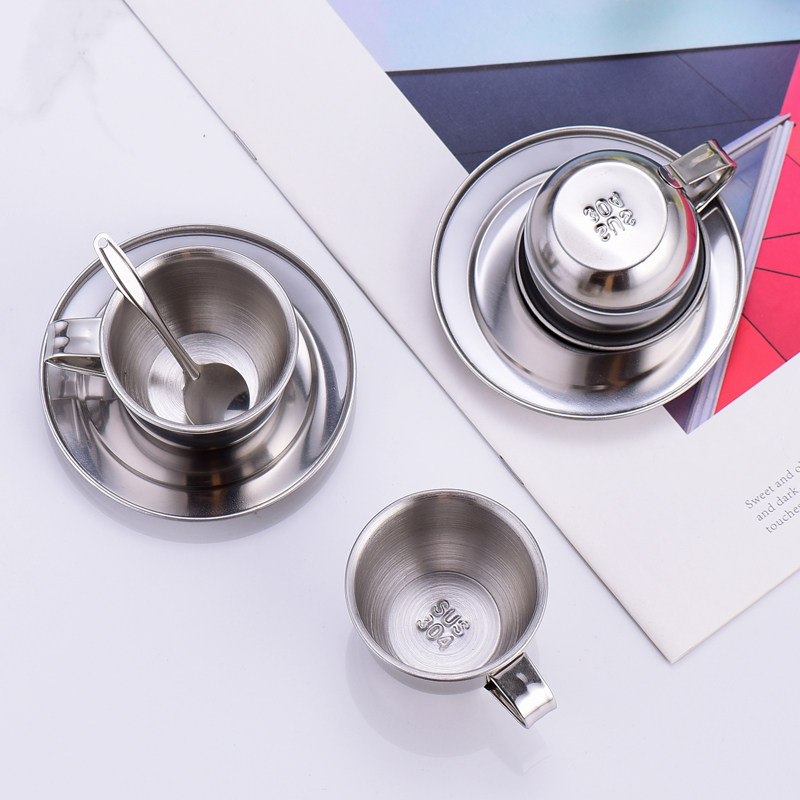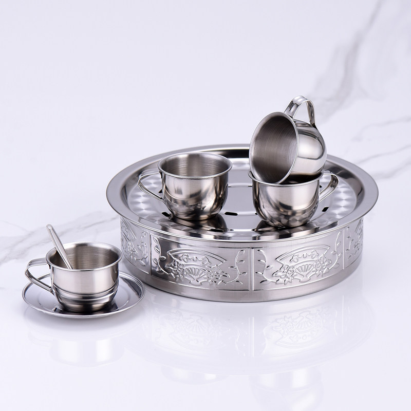 不锈钢茶具304水杯茶盘简约小号耐摔户外便捷小孩自主喝水