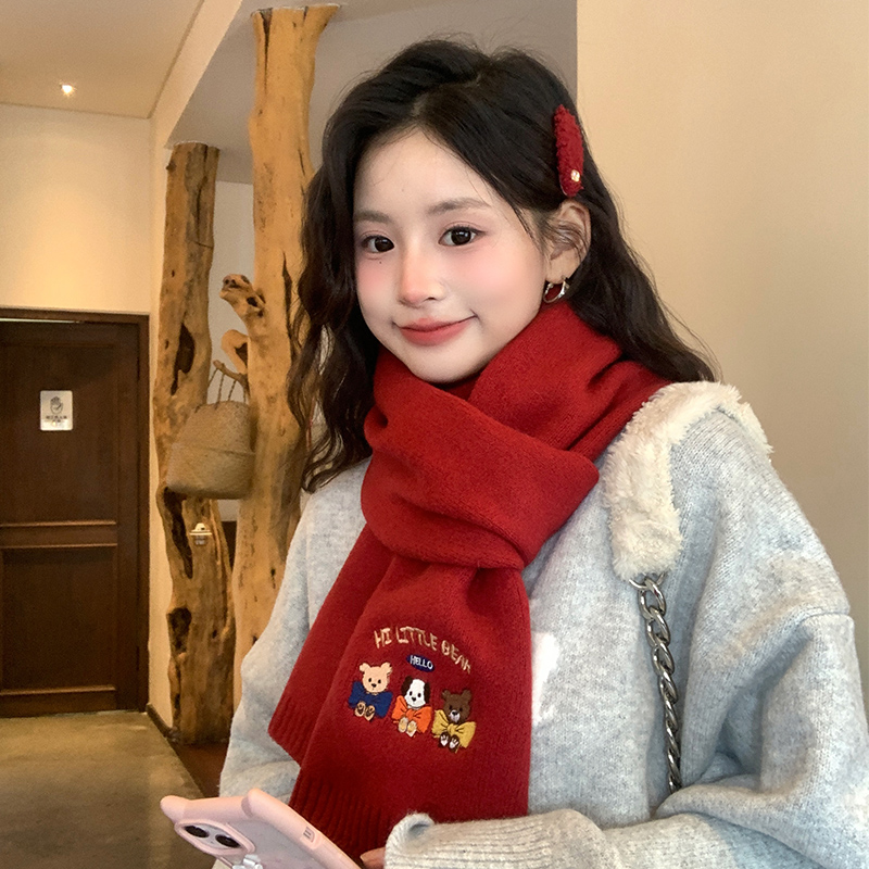 芸芳儿可爱小熊针织毛线围巾