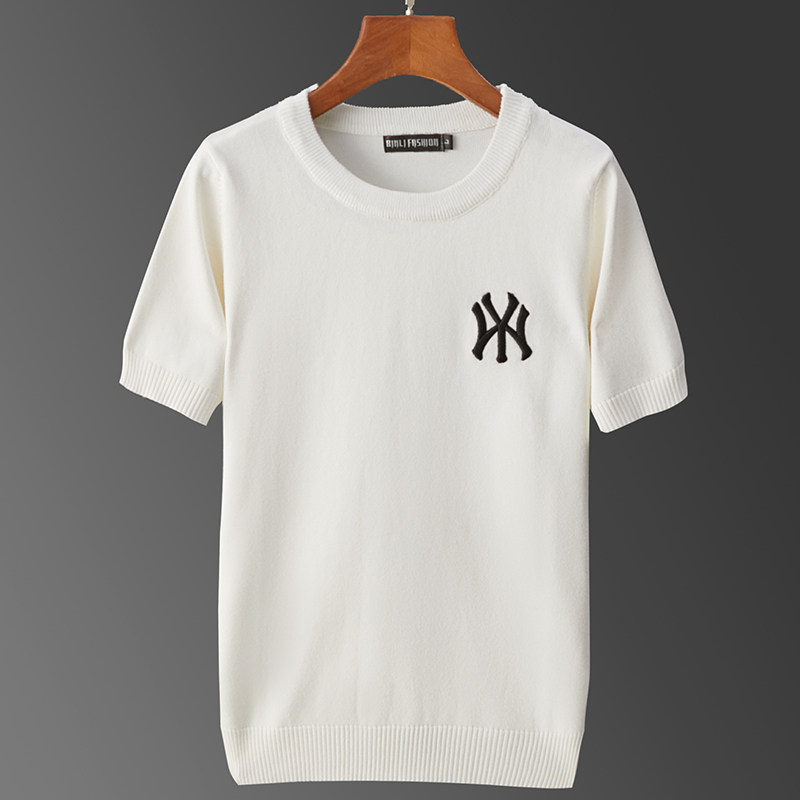 男士冬季半袖针织衫新款白色毛衣加肥加大内搭保暖大码打底棉T恤