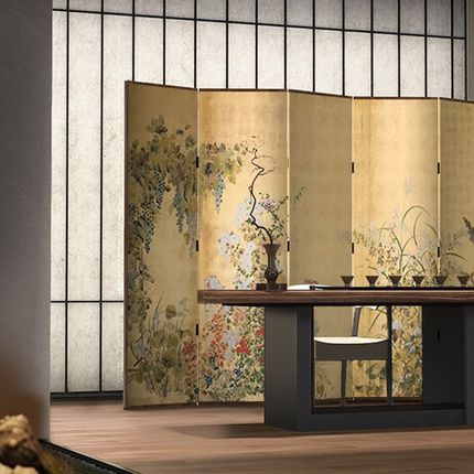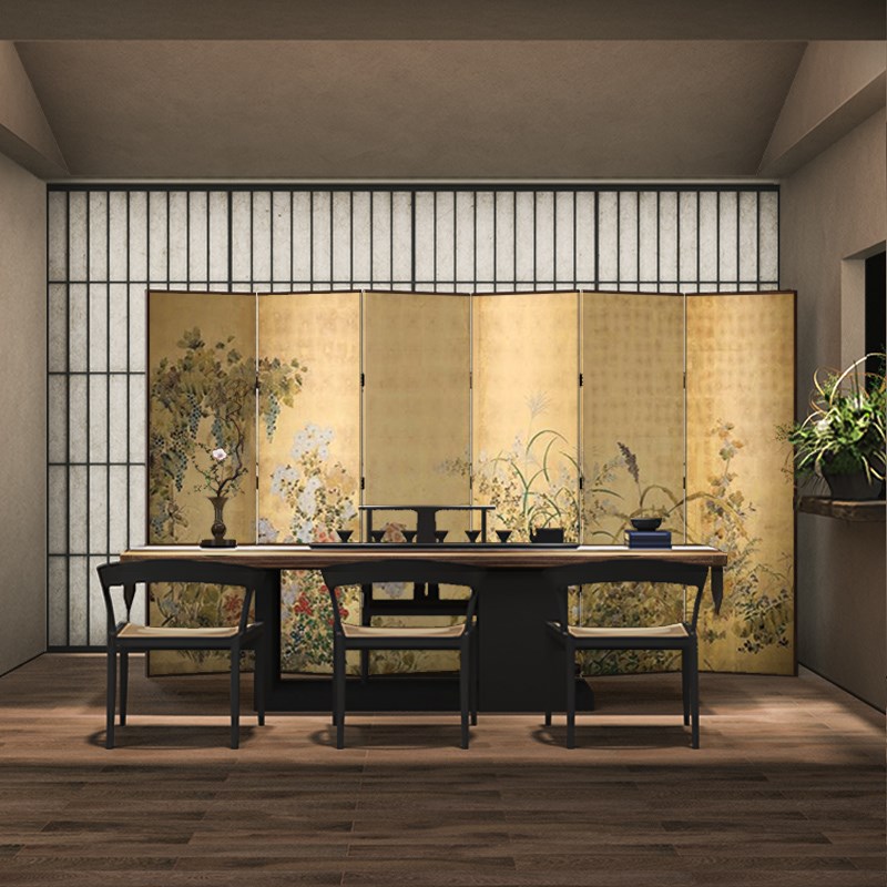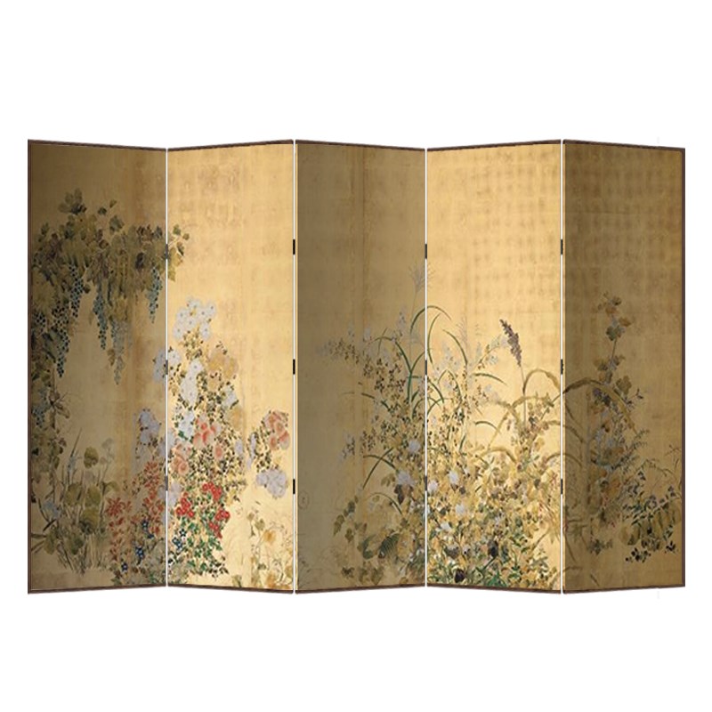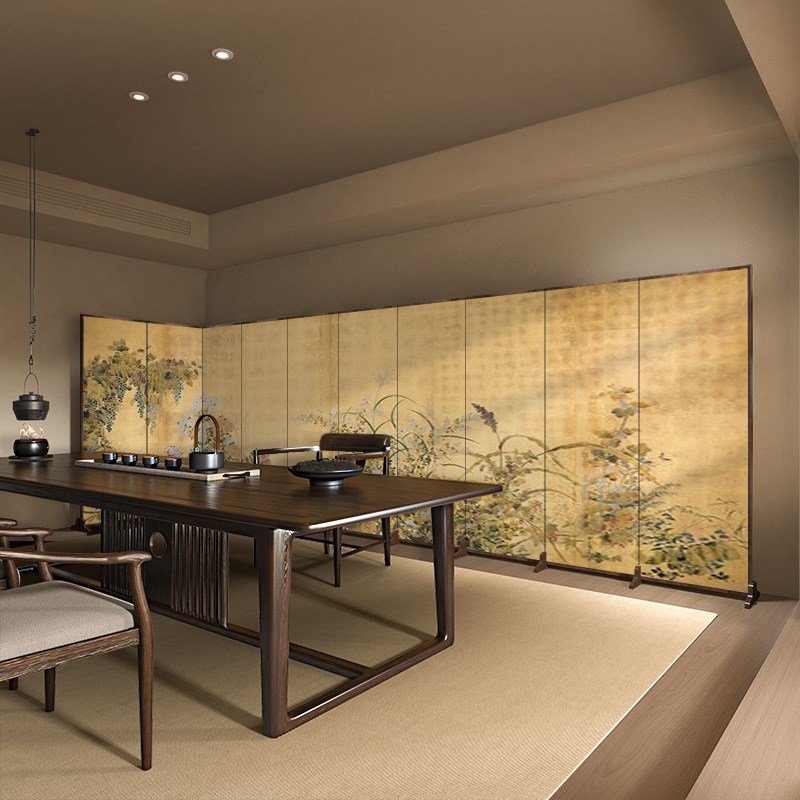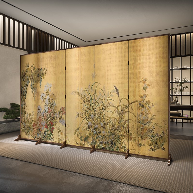 新中式实木屏风折叠移动隔断客厅卧室遮挡办公室酒店折屏春秋花草