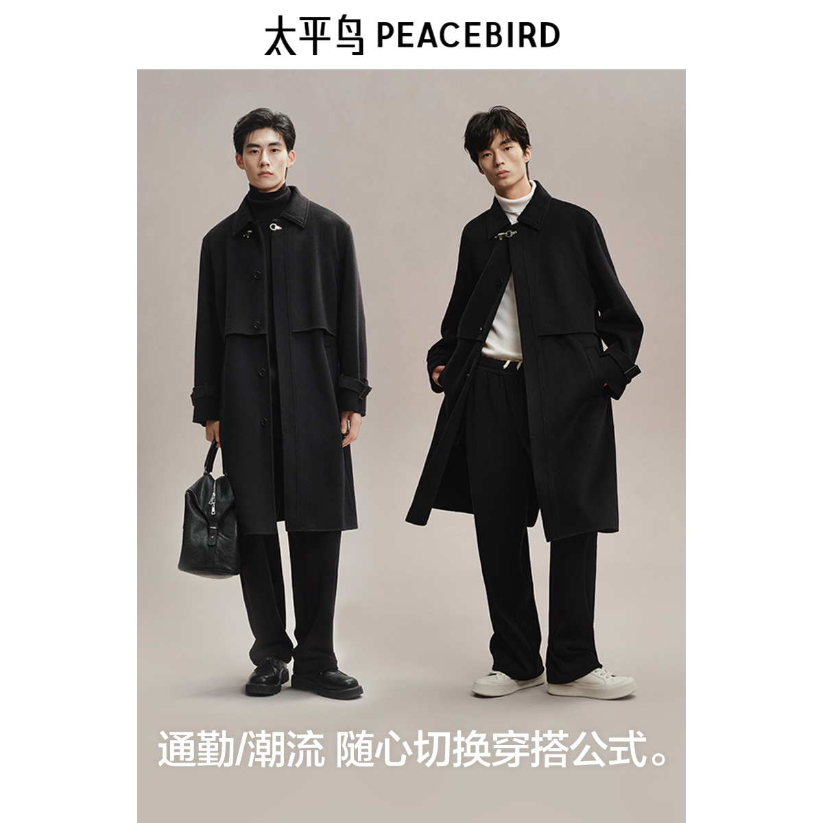 【重磅】太平鸟男装双面呢大衣长款年冬新款宽松羊毛外套潮