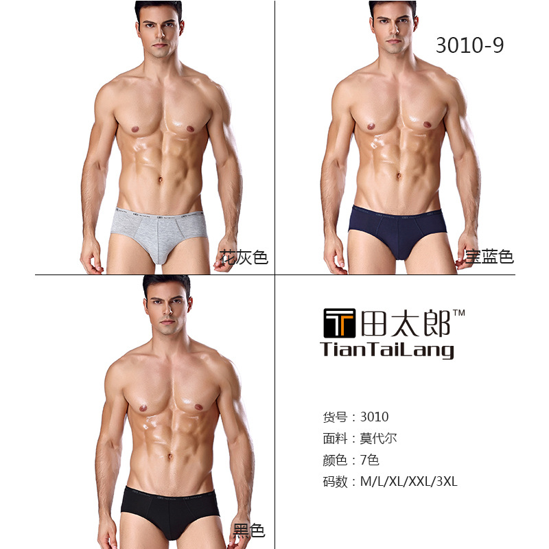 田太郎男士内裤透气弹力小边大码莫代尔棉纯色舒适男士三角内裤头