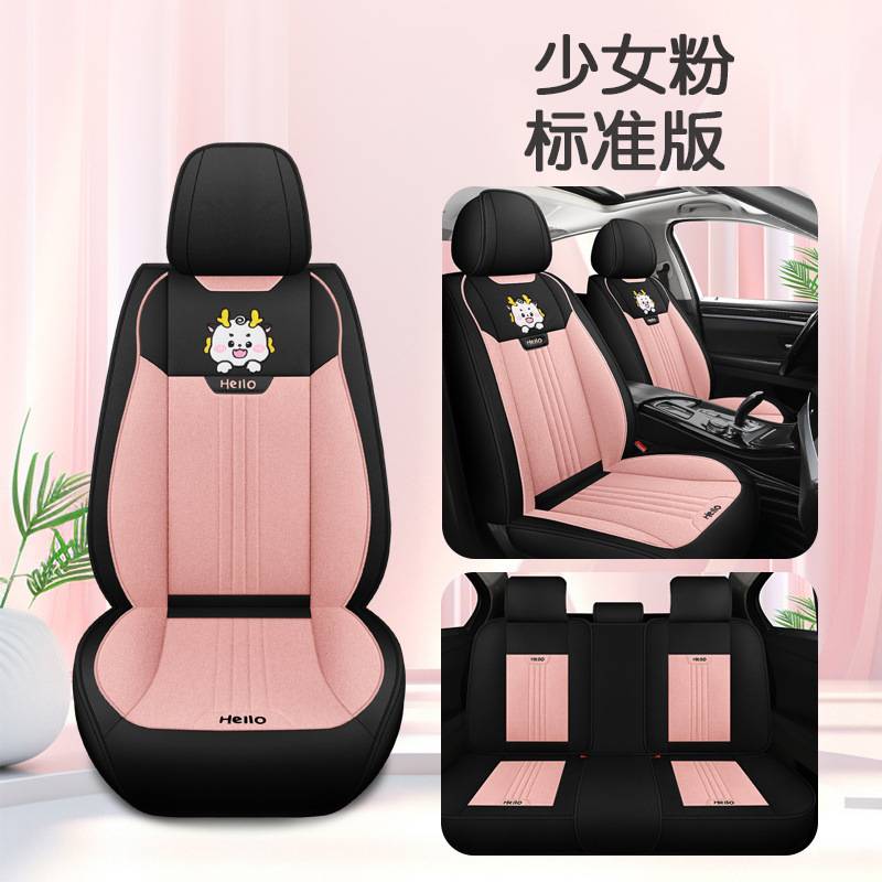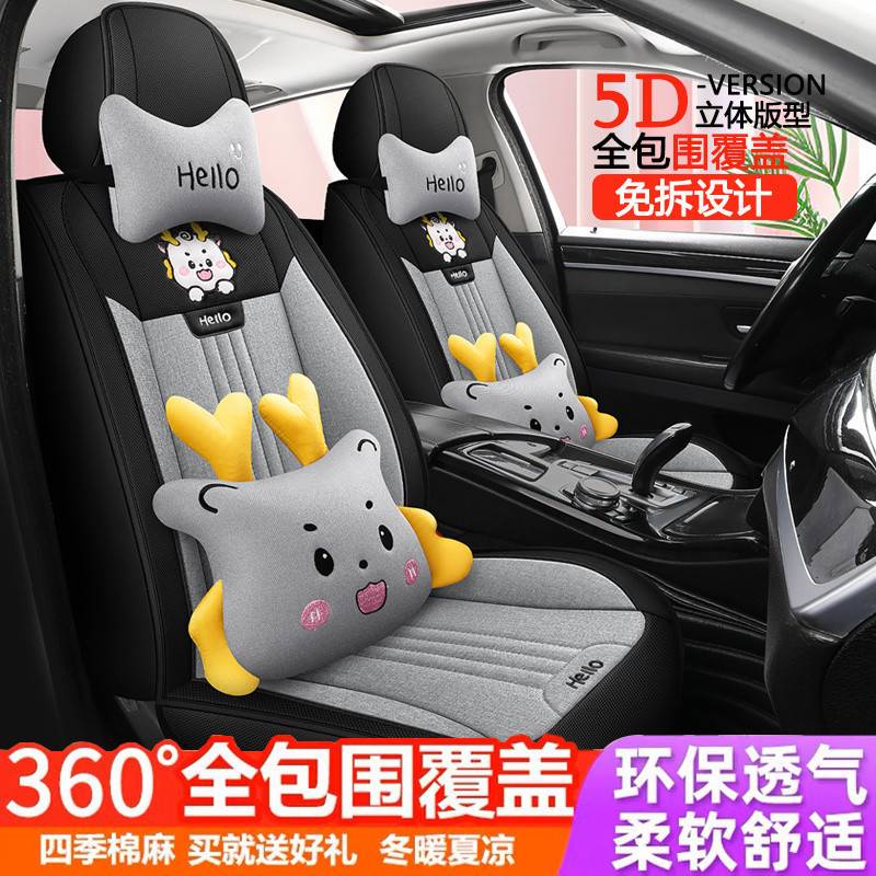 潮款汽车坐垫车内坐垫全套夏季亚麻布艺座套卡通四季通用座椅垫