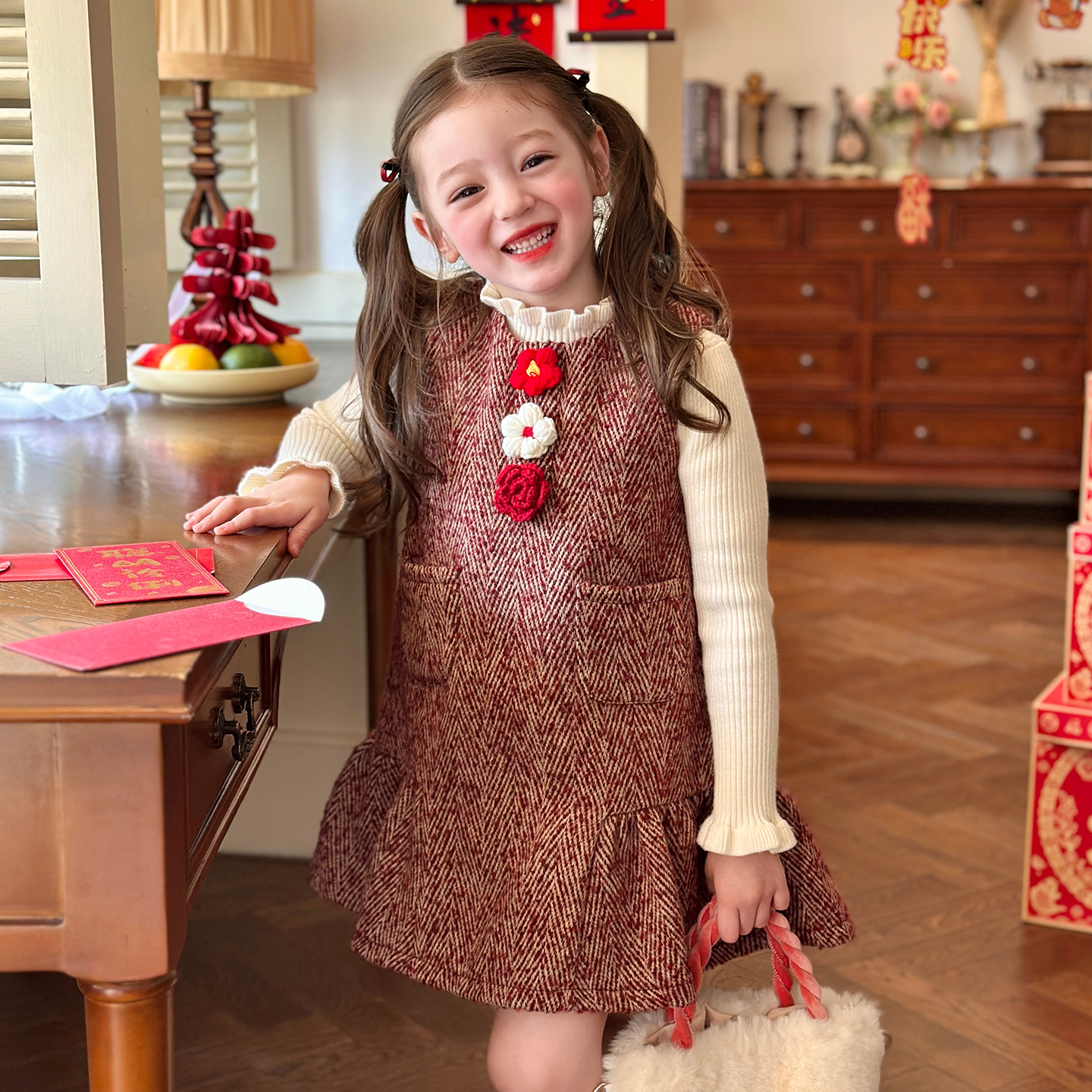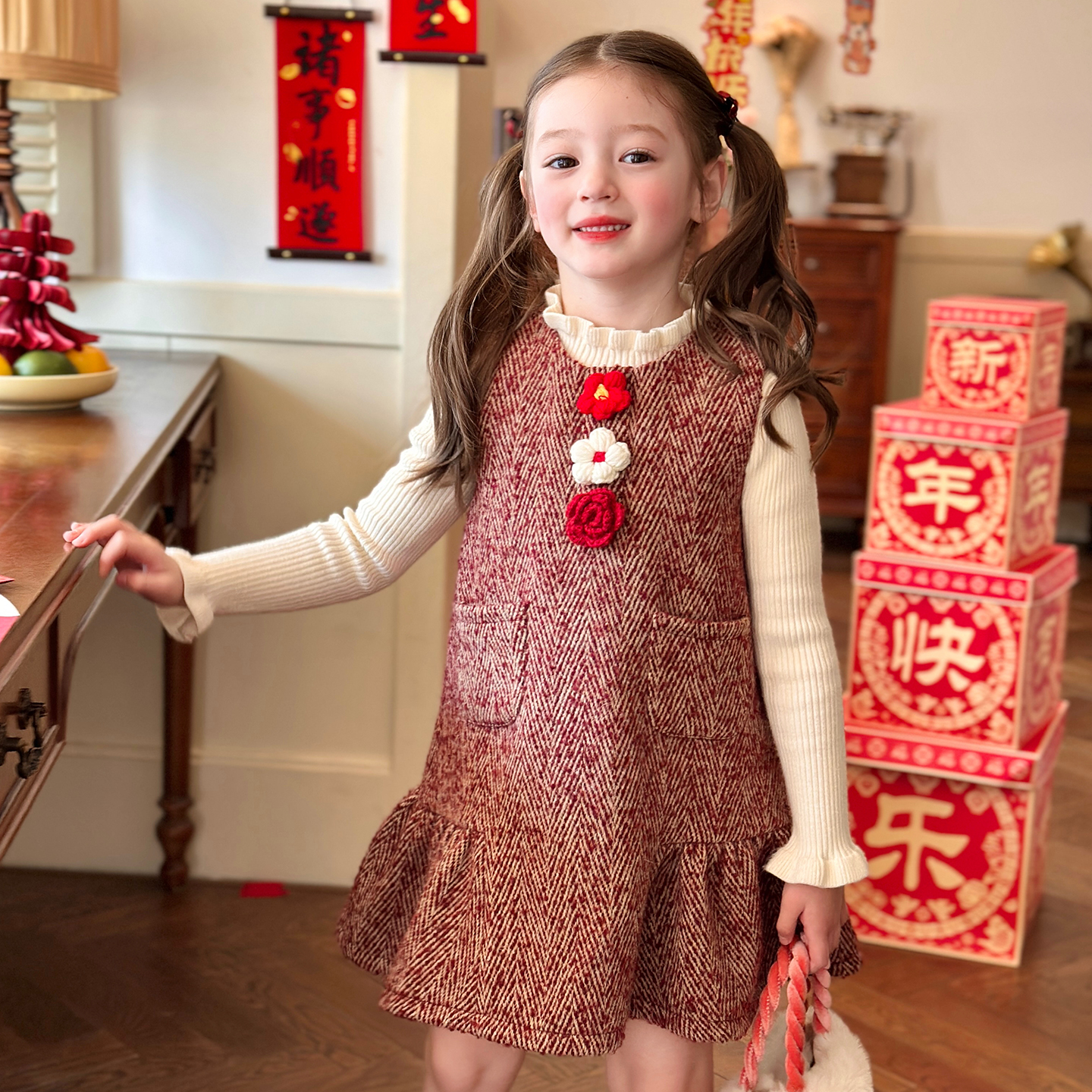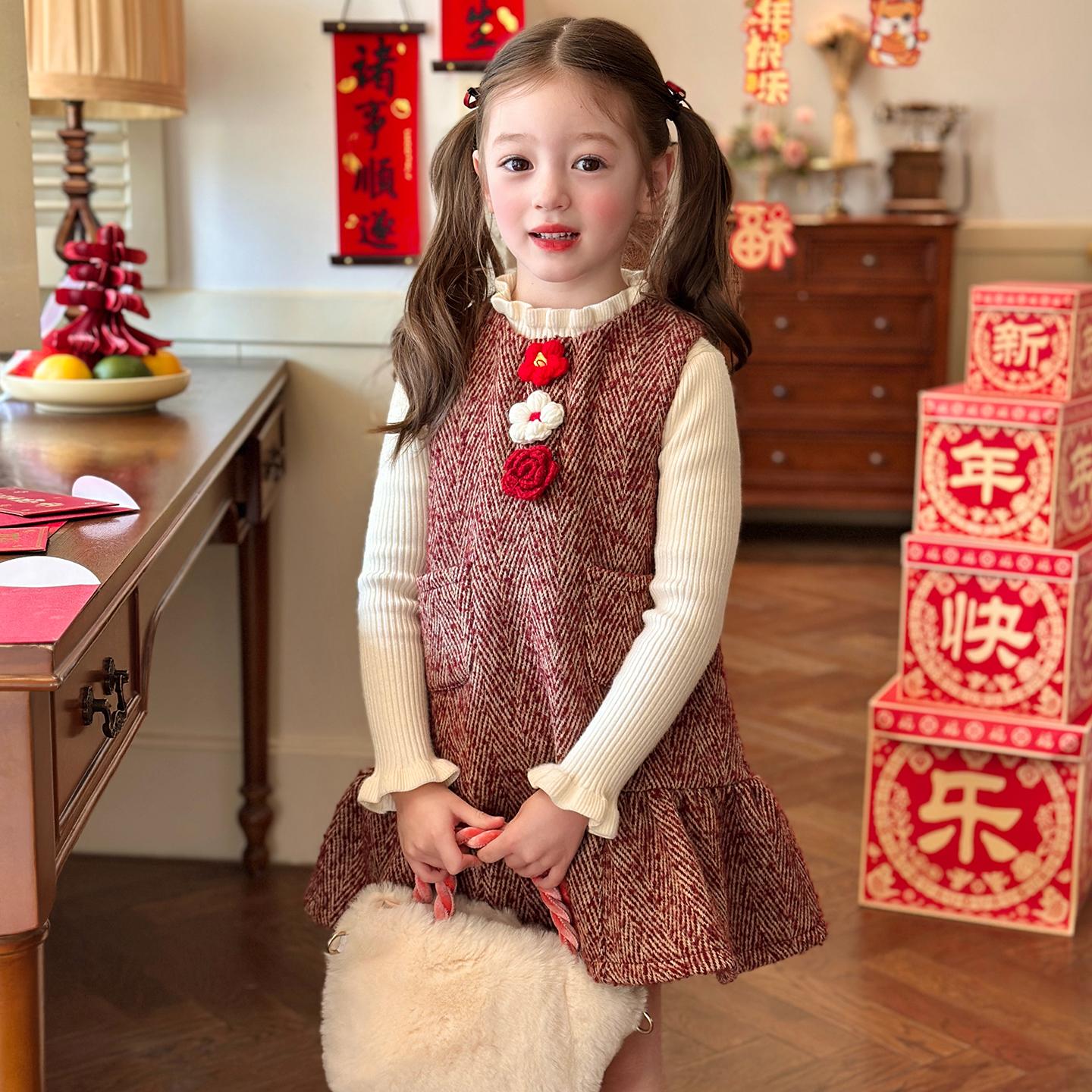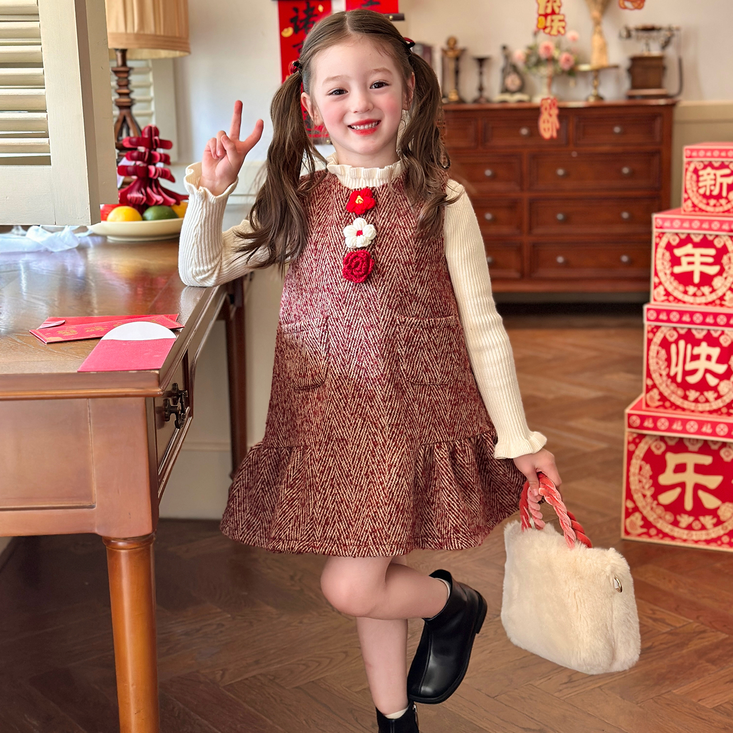 栀了成长记女童装圣诞新年背心裙2025冬季儿童可爱甜美加绒连衣裙