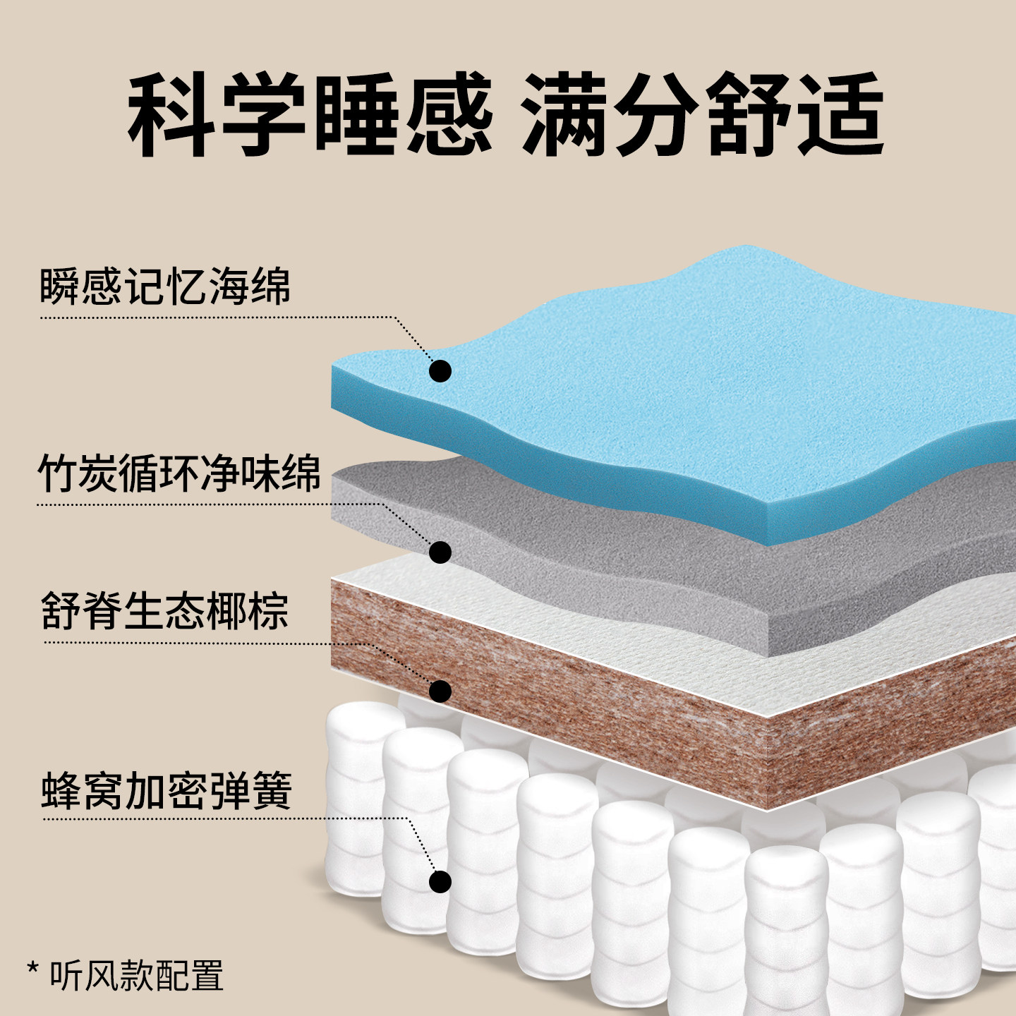 梦神椰棕硬睡感乳胶蜂窝弹簧床垫