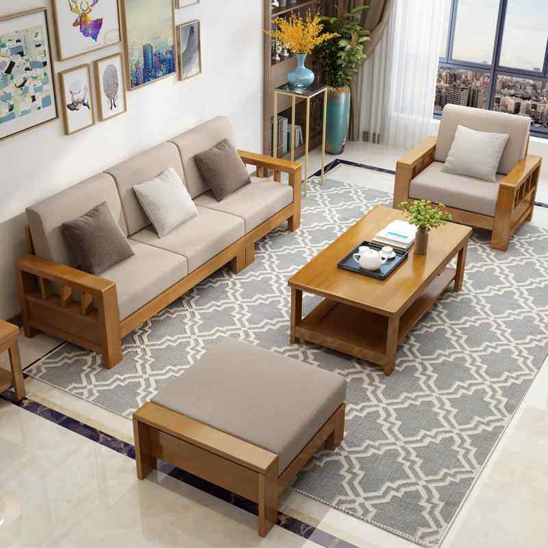 北欧实木沙发组合现代简约贵妃转角小户型客厅家具橡胶木布艺沙发