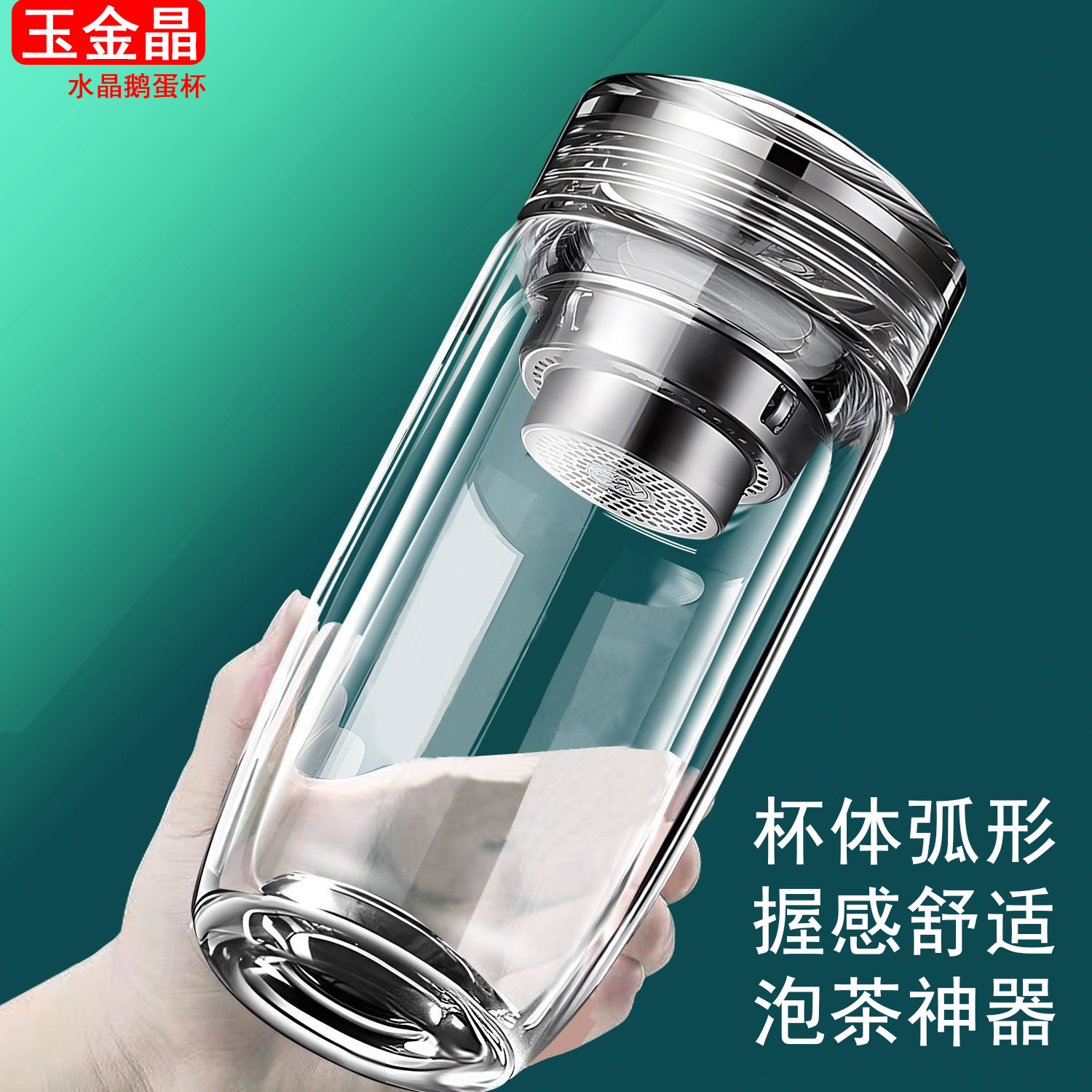 水晶盖玻璃鹅蛋杯大容量男士商务男女士泡茶便携隔热泡茶水分离杯