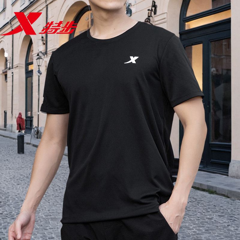 特步t恤男秋季休闲运动正品短袖健身跑步速干衣宽松透气圆领半袖