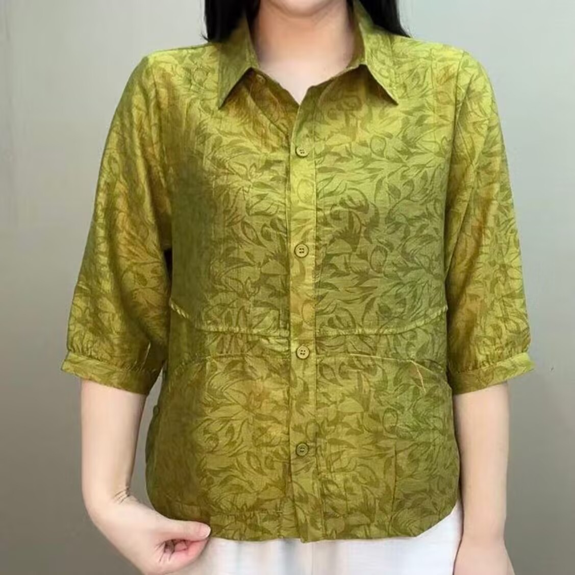春夏季七分袖妈妈气质碎花衬衫时尚减龄宽松新款百搭翻领上衣开衫
