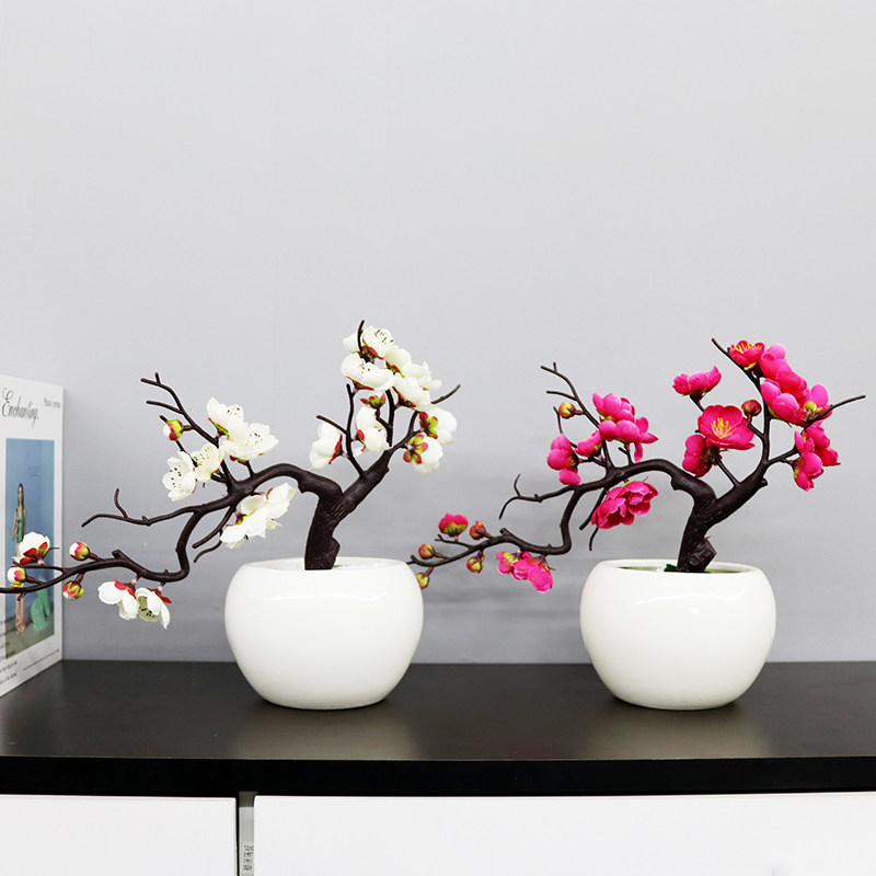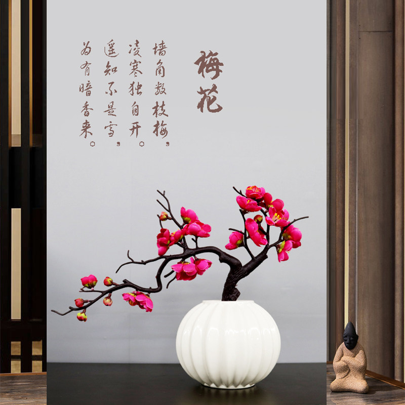 仿真梅花枝桃花干花玉兰花盆景客厅腊梅假花家居摆件书房装饰盆栽