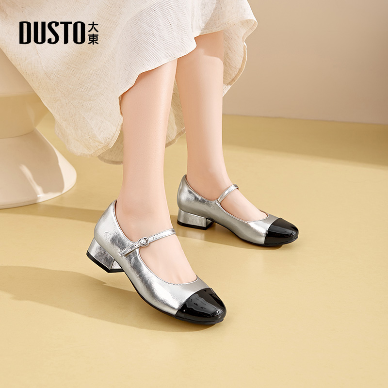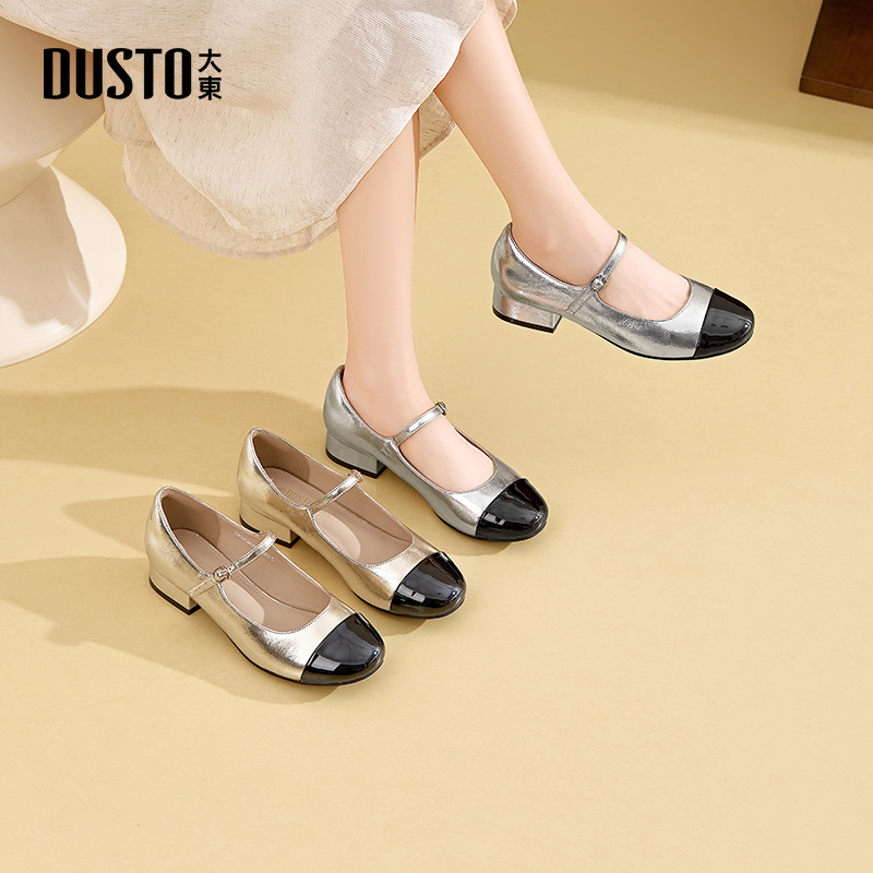 大东dd法式玛丽珍女鞋2025新款秋季圆头气质单鞋小香风拼色高跟鞋