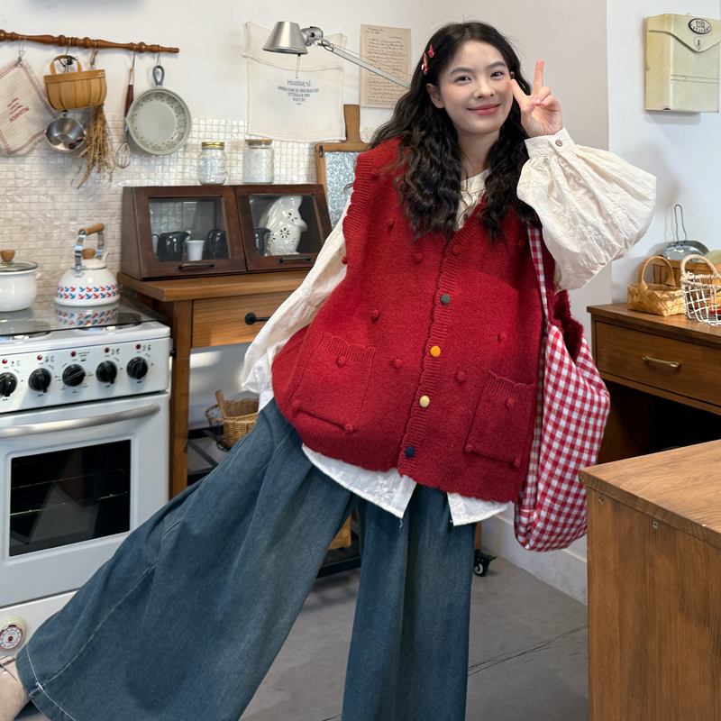 大码女装胖mm秋冬新款宽松显瘦衬衫+针织毛衣马甲+牛仔裤叠穿套装