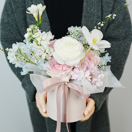 轻奢小号鲜花抱抱桶花束diy材料花桶圆形花艺礼盒插花桶包装盒
