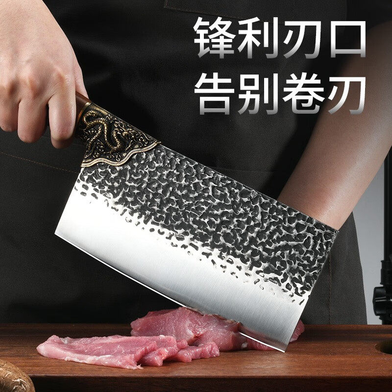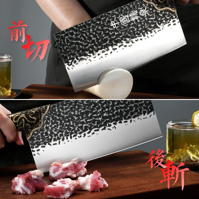 阳江正宗龙泉菜刀家用高锰钢开刃厨师专用切片刀锻打斩切两用刀具