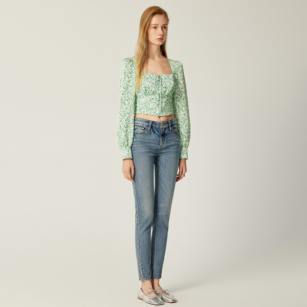 【七七酱直播间】商场同款 摩萨克春水洗高腰九分锥形牛仔长裤