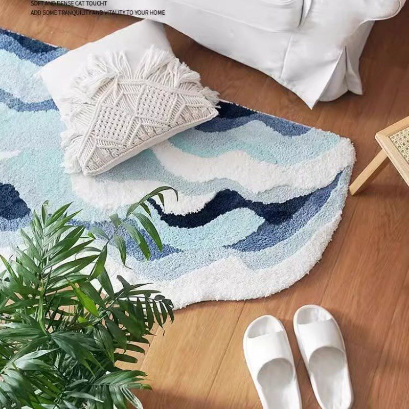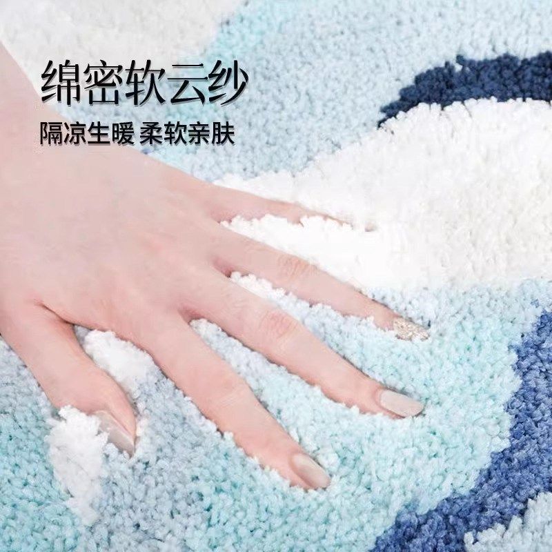 ins海洋风床边毯卧室房间t床前脚垫装饰地毯防滑天津地垫2024新款