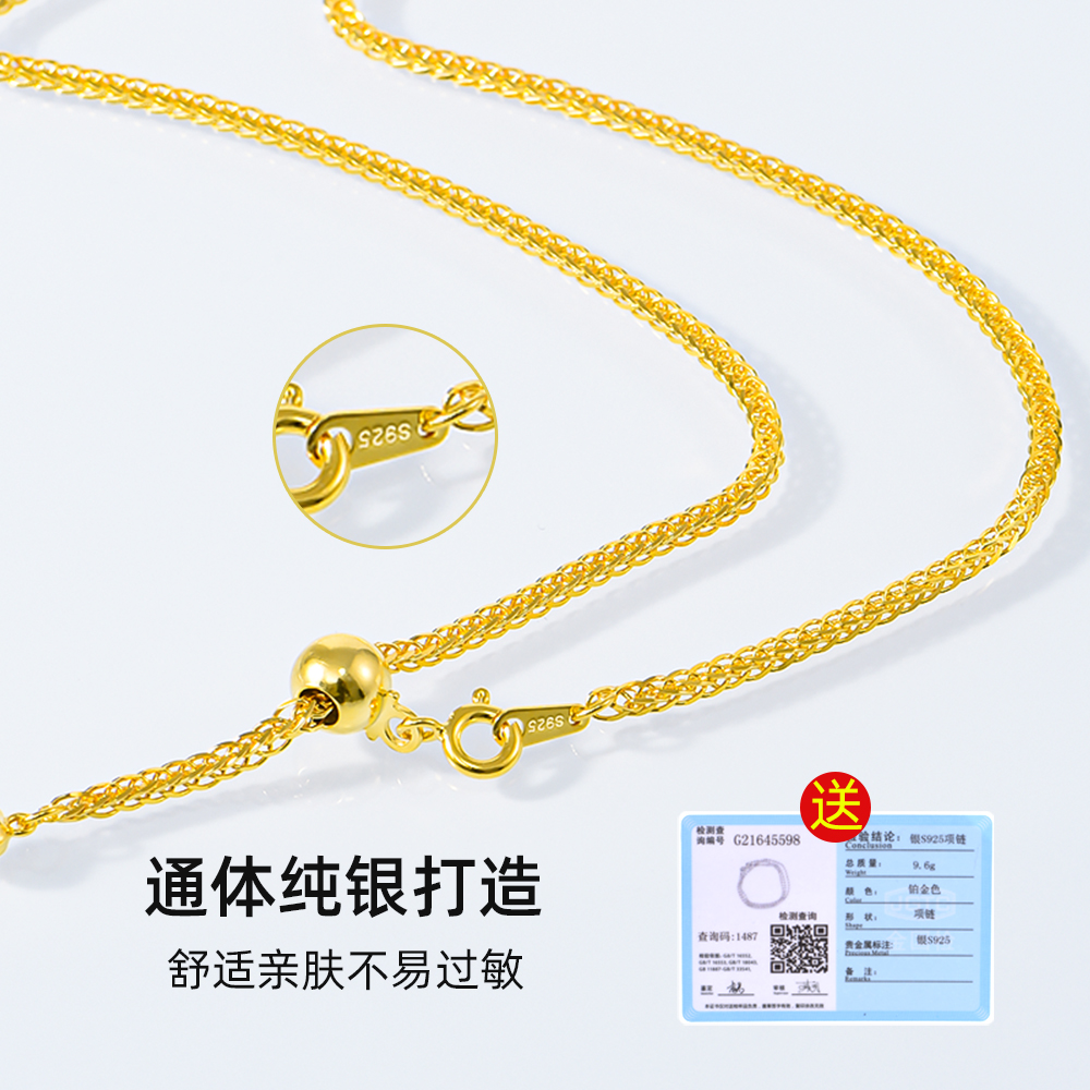 可调节肖邦链925银项链女纯银能万链毛衣链镀18k金色银链子锁骨链