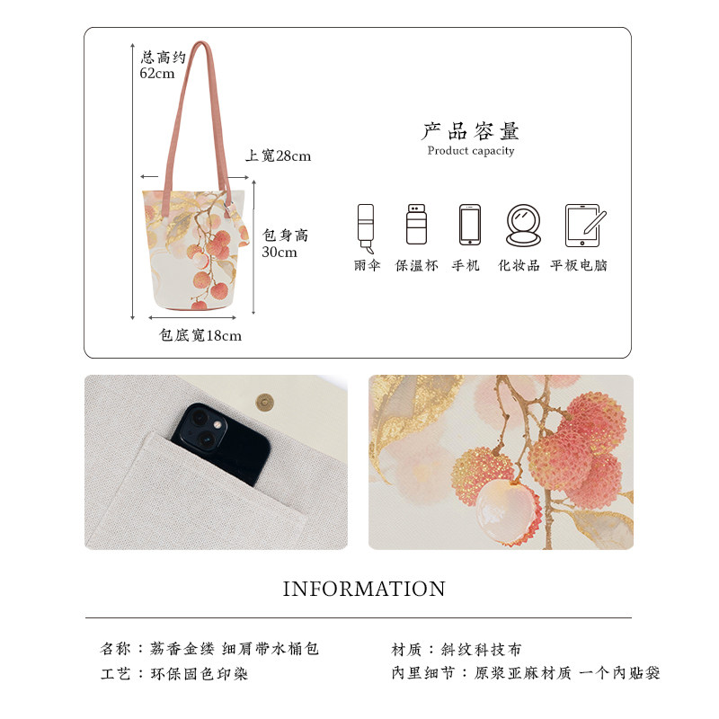 彩衣堂国风荔枝手拎单肩腋下斜挎通勤水桶包中式汉服春夏文创礼物