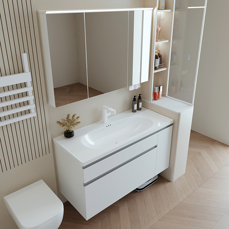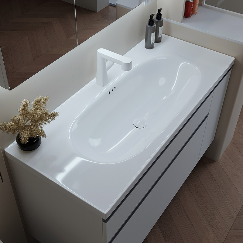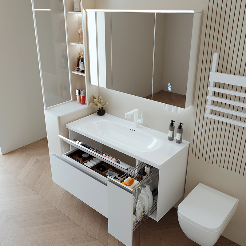 ENF肤感白日式收纳浴室柜组合抽屉拉篮洗漱台陶瓷一体洗手洗脸盆