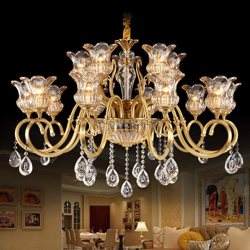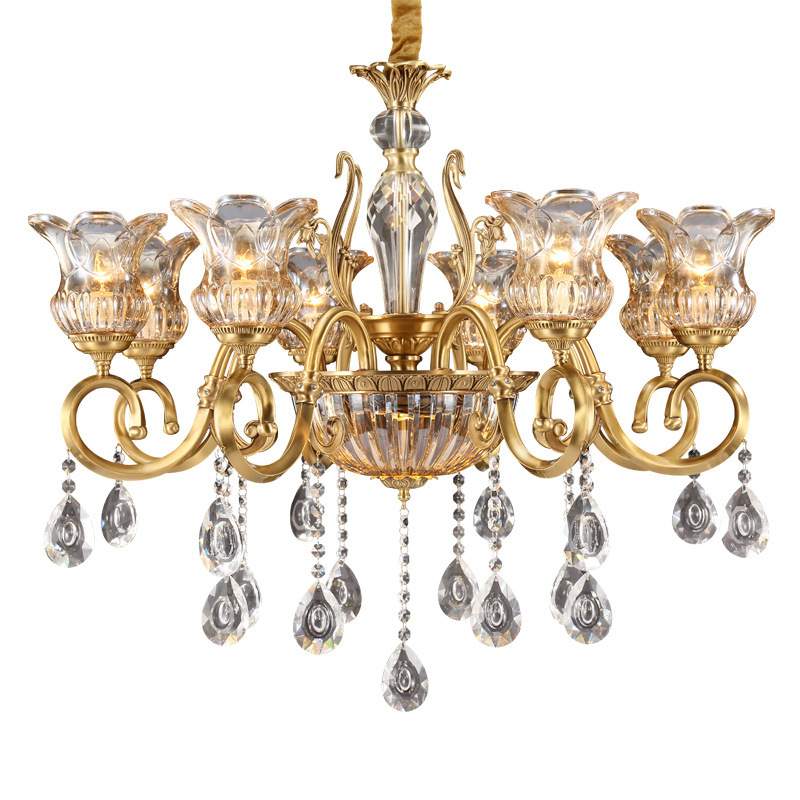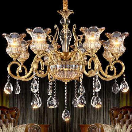 全铜美式轻奢客厅吊灯欧式大气水晶餐厅卧室灯创意复古灯具