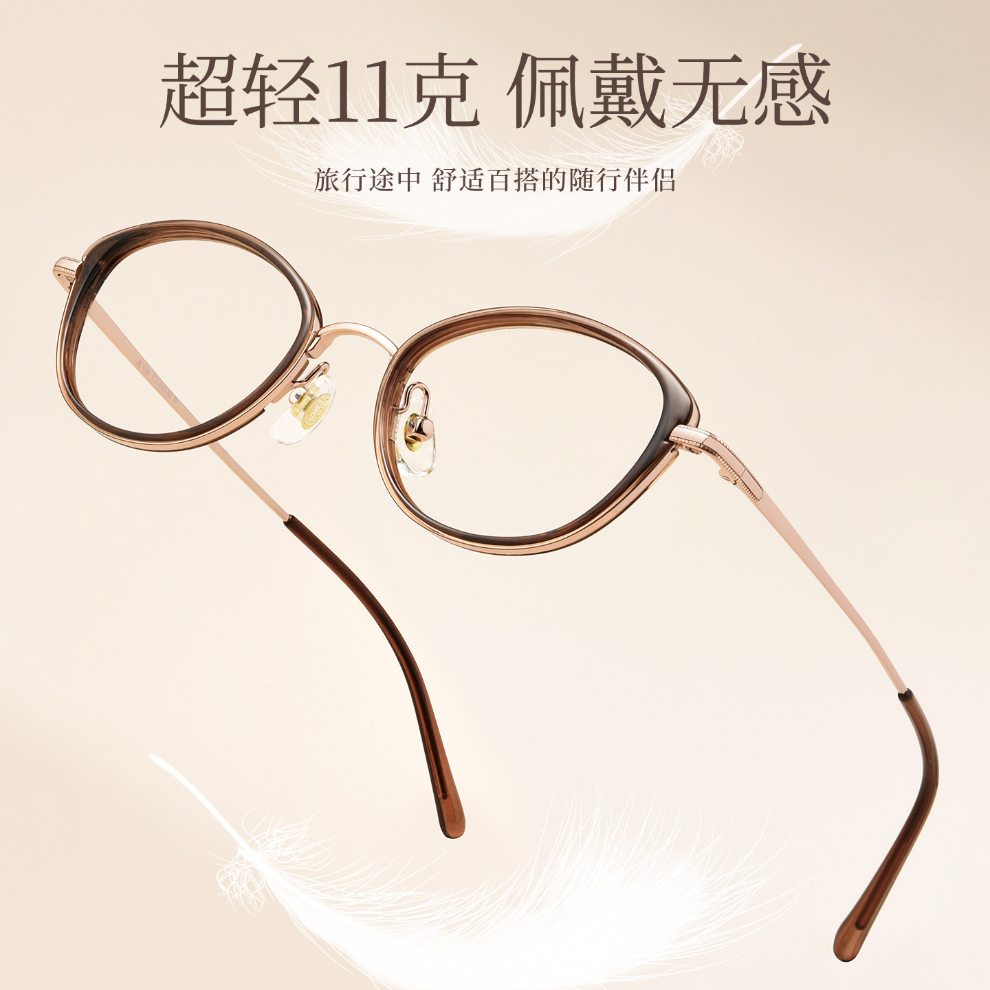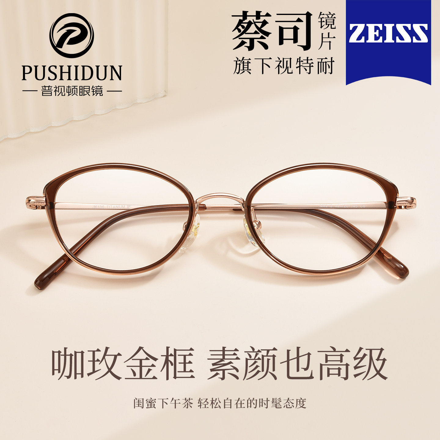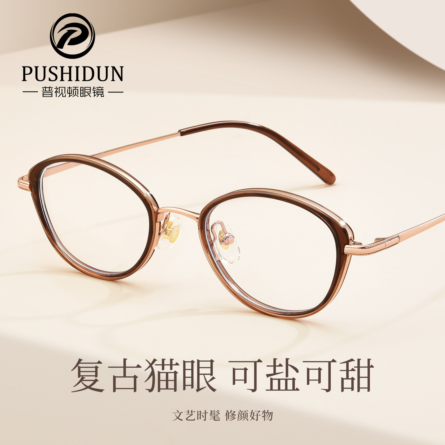 超轻纯钛茶色猫眼近视眼镜框女款