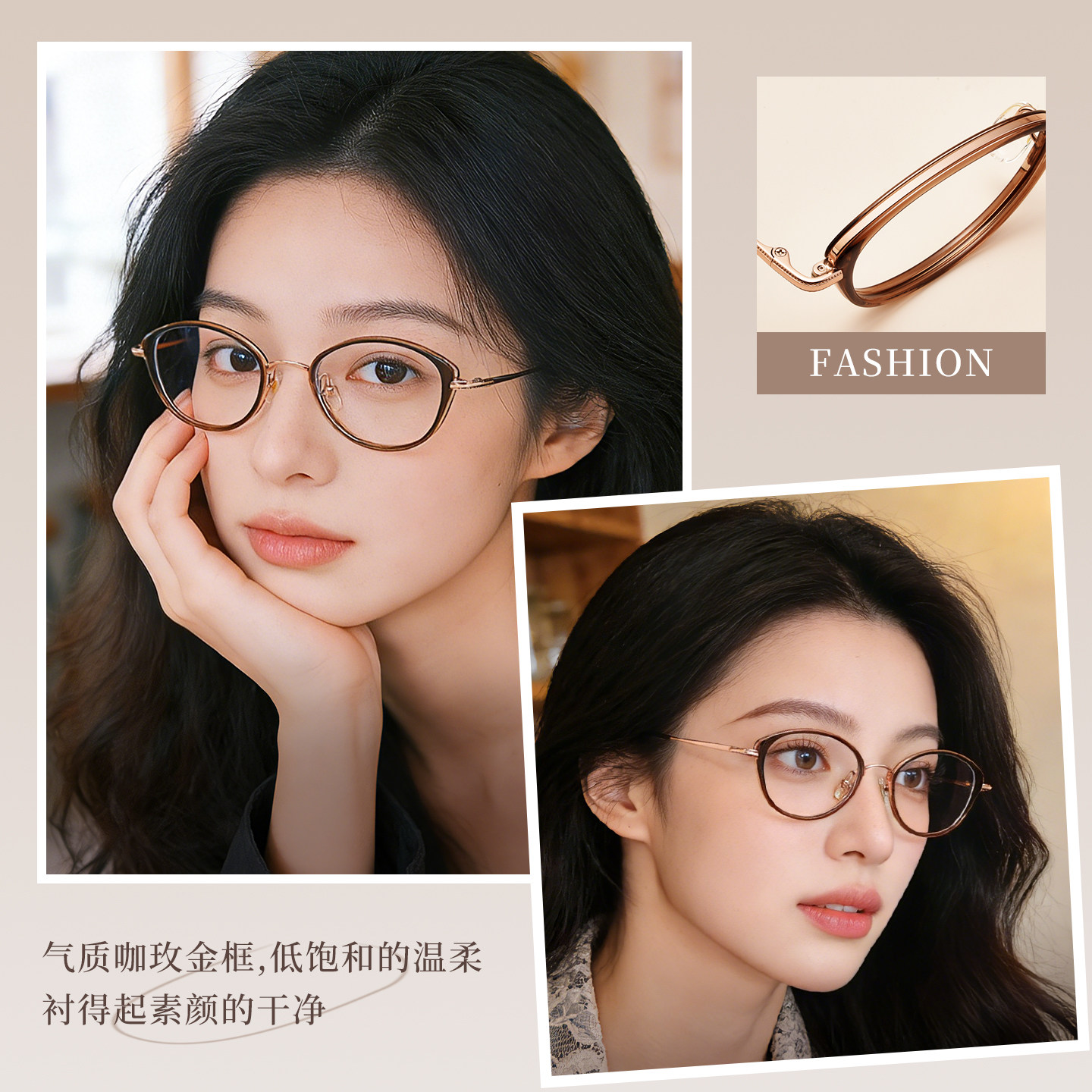 超轻纯钛茶色猫眼近视眼镜框女款可配度数高级感小框方圆脸显脸小