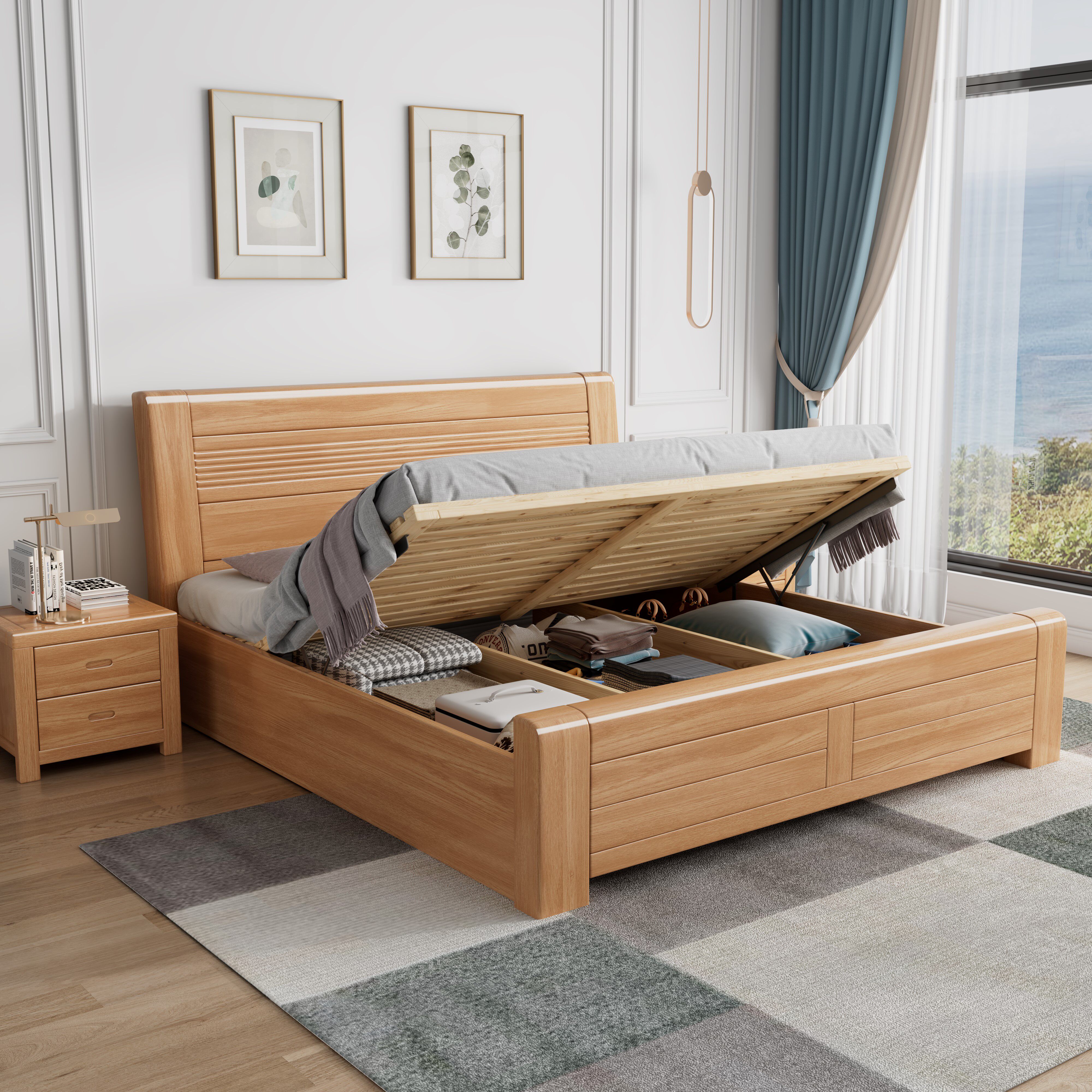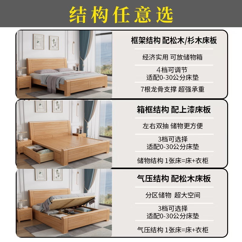 尚品宅配榉木全实木床1.8米中式简约主卧双人床大床1.5工厂直销储