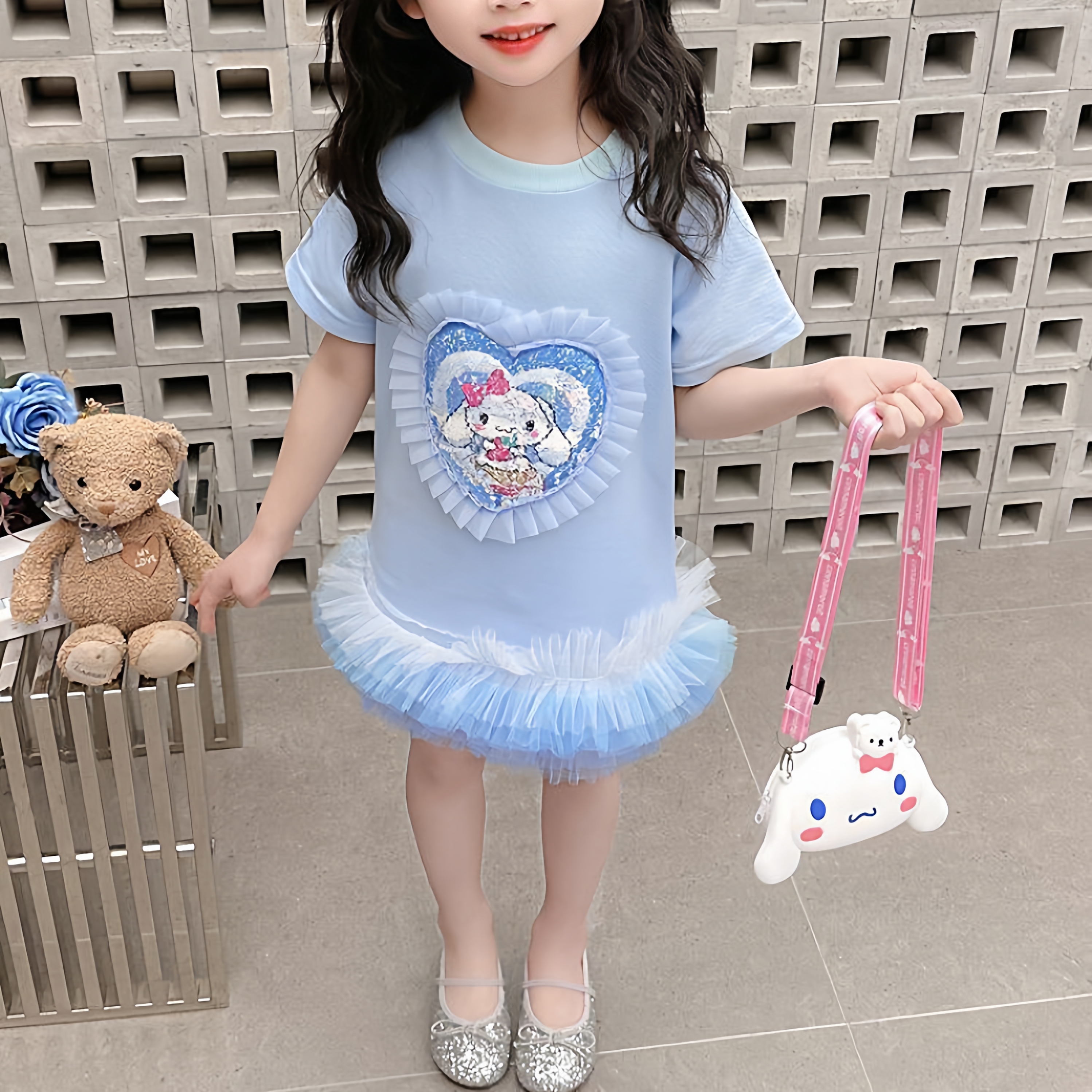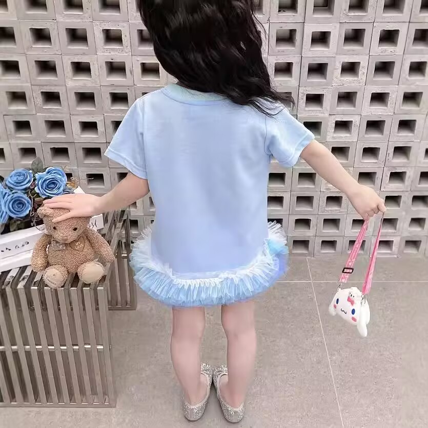 库洛米变色网纱花边连衣裙卡通夏装女童美乐蒂亮片翻转甜美公主裙