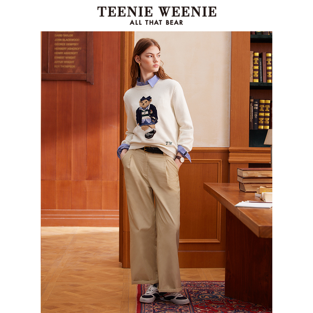 TeenieWeenie小熊女装毛衣2025秋新款提花学院休闲舒适圆领针织衫