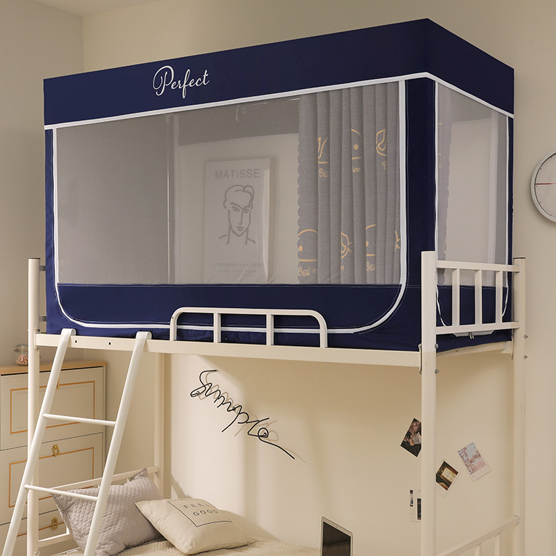 学生宿舍蚊帐床帘遮光一体式寝室单人上铺下铺带支架全封闭拉链款