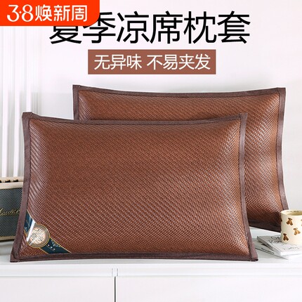 花花公子夏季凉席枕套藤枕芯套成人一对装透气枕套48*74cm内胆套