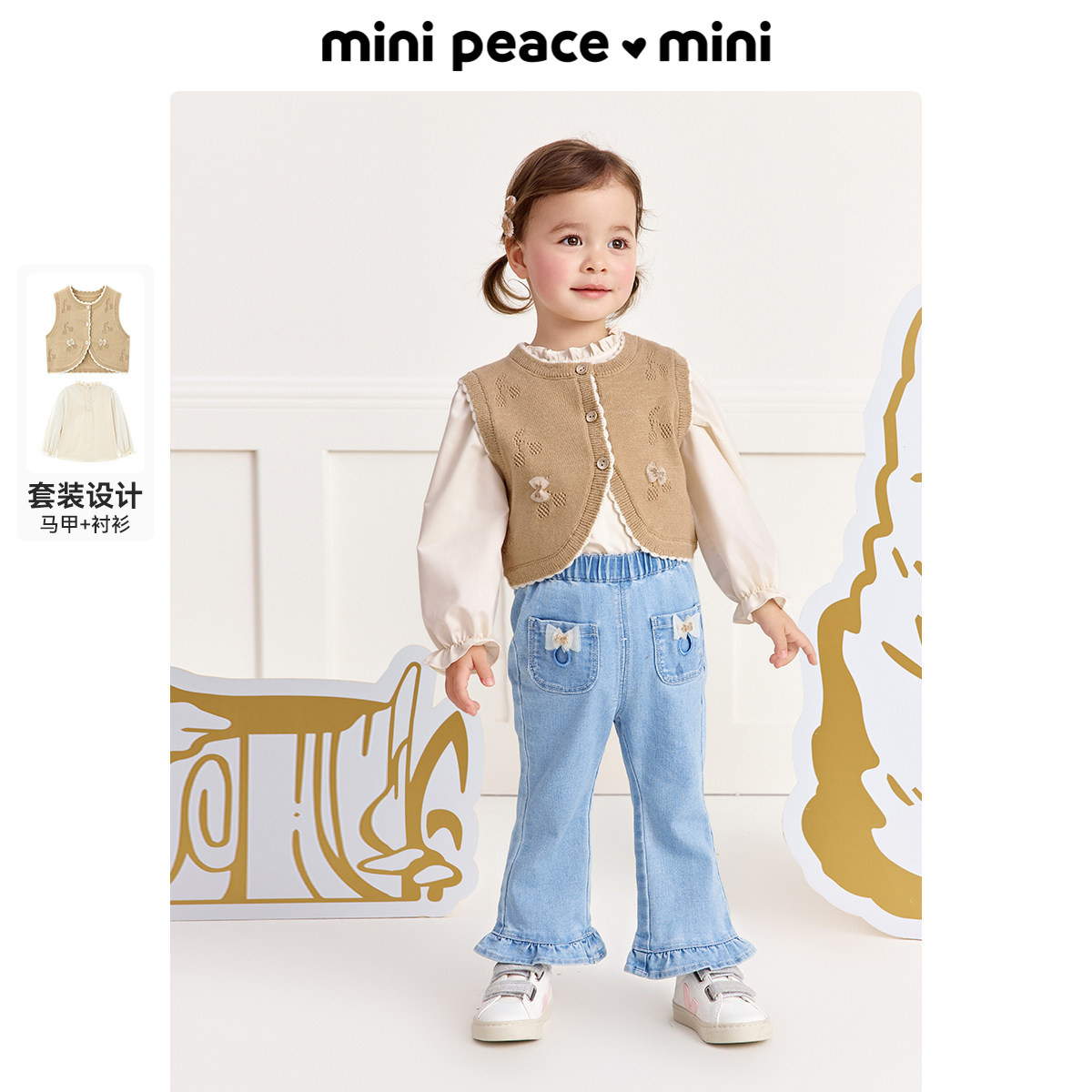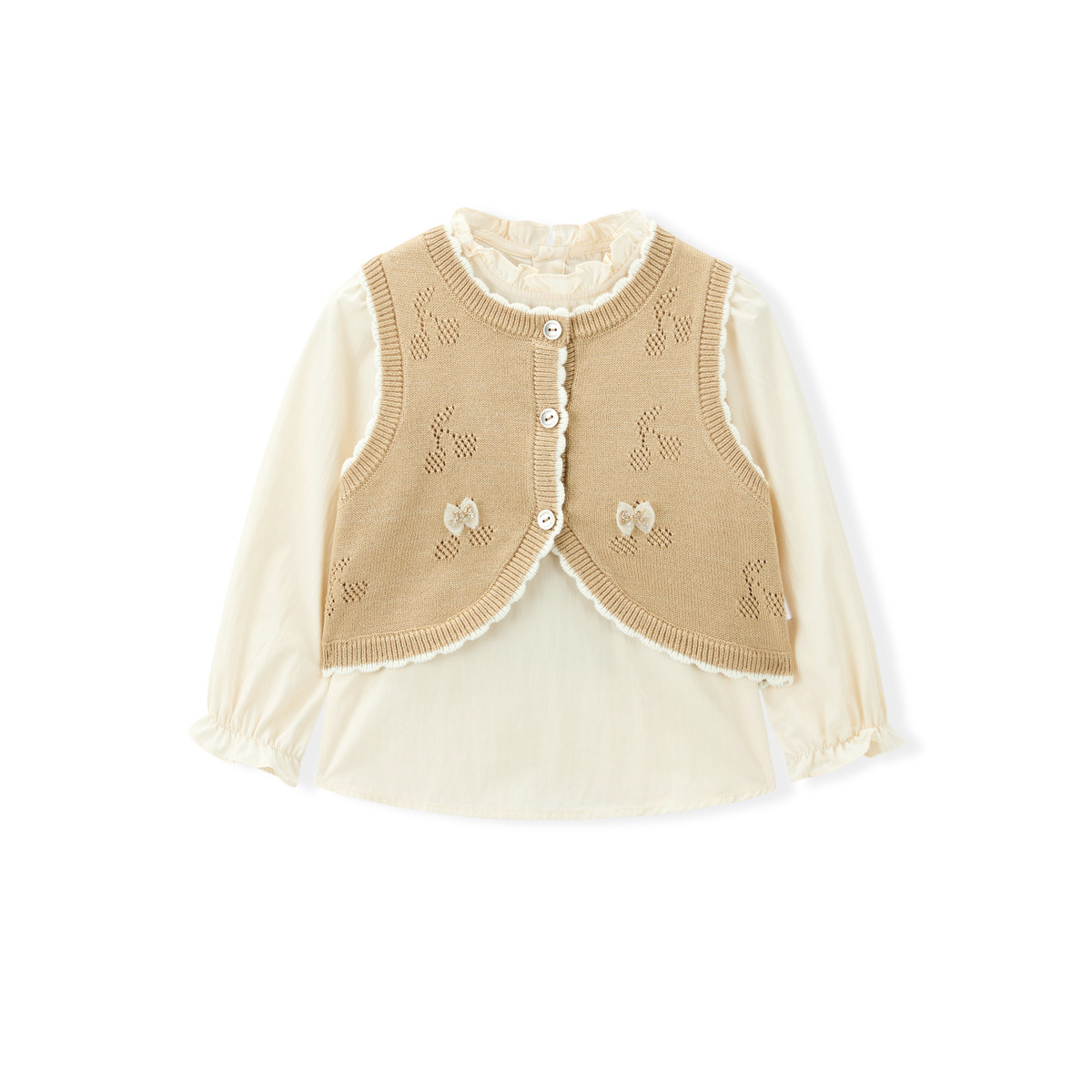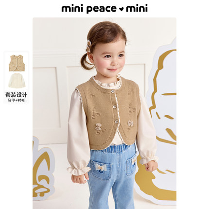 【专柜同款】MINIPEACE太平鸟童装女幼童套装针织马甲衬衫两件套