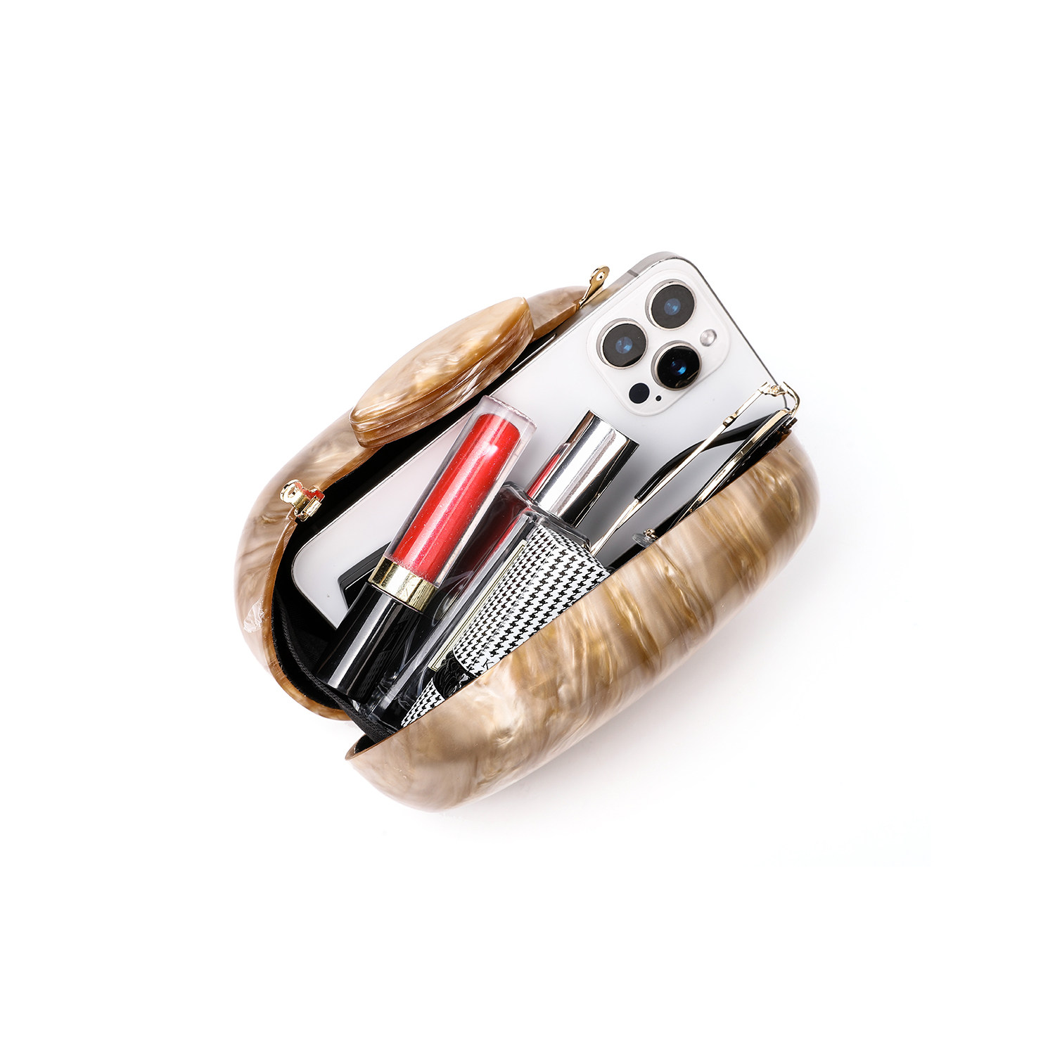 亚克力大理石琥珀鹅蛋水彩盒子水彩宴会椭圆贝壳手拿斜挎包百搭