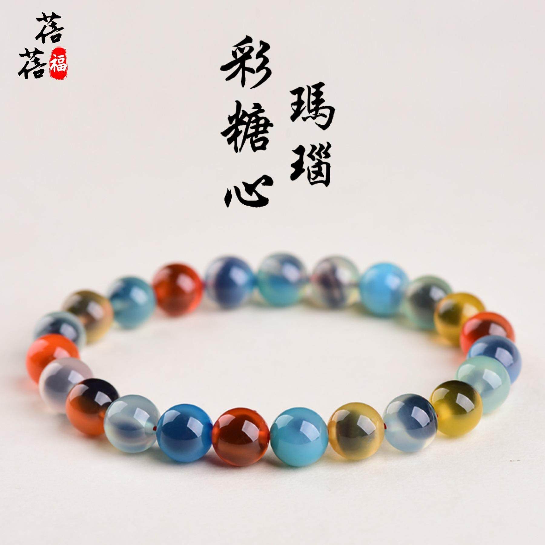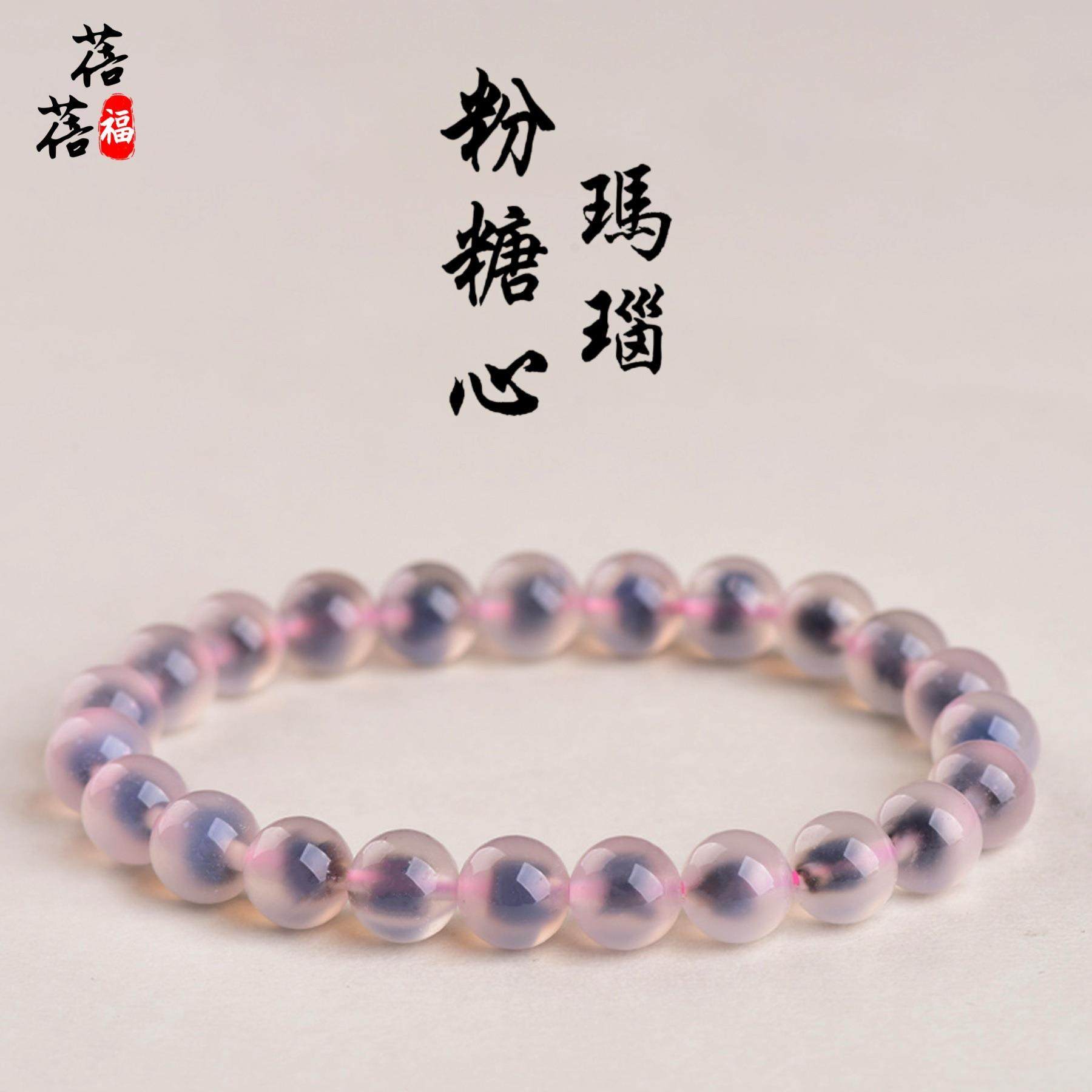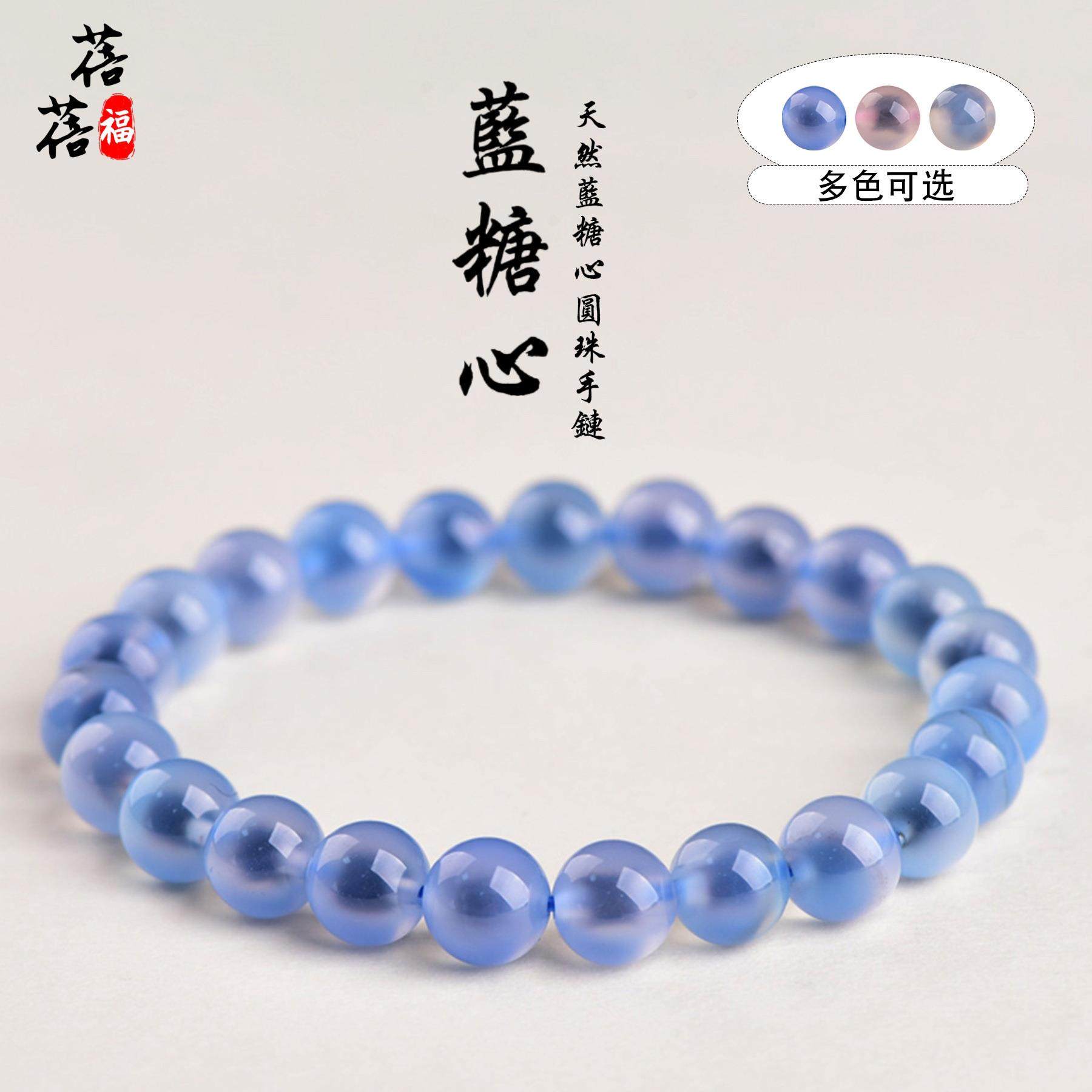 2025蓓蓓福水晶 7A级天然糖心玛瑙手链 蓝色白色粉色糖心玛瑙手串