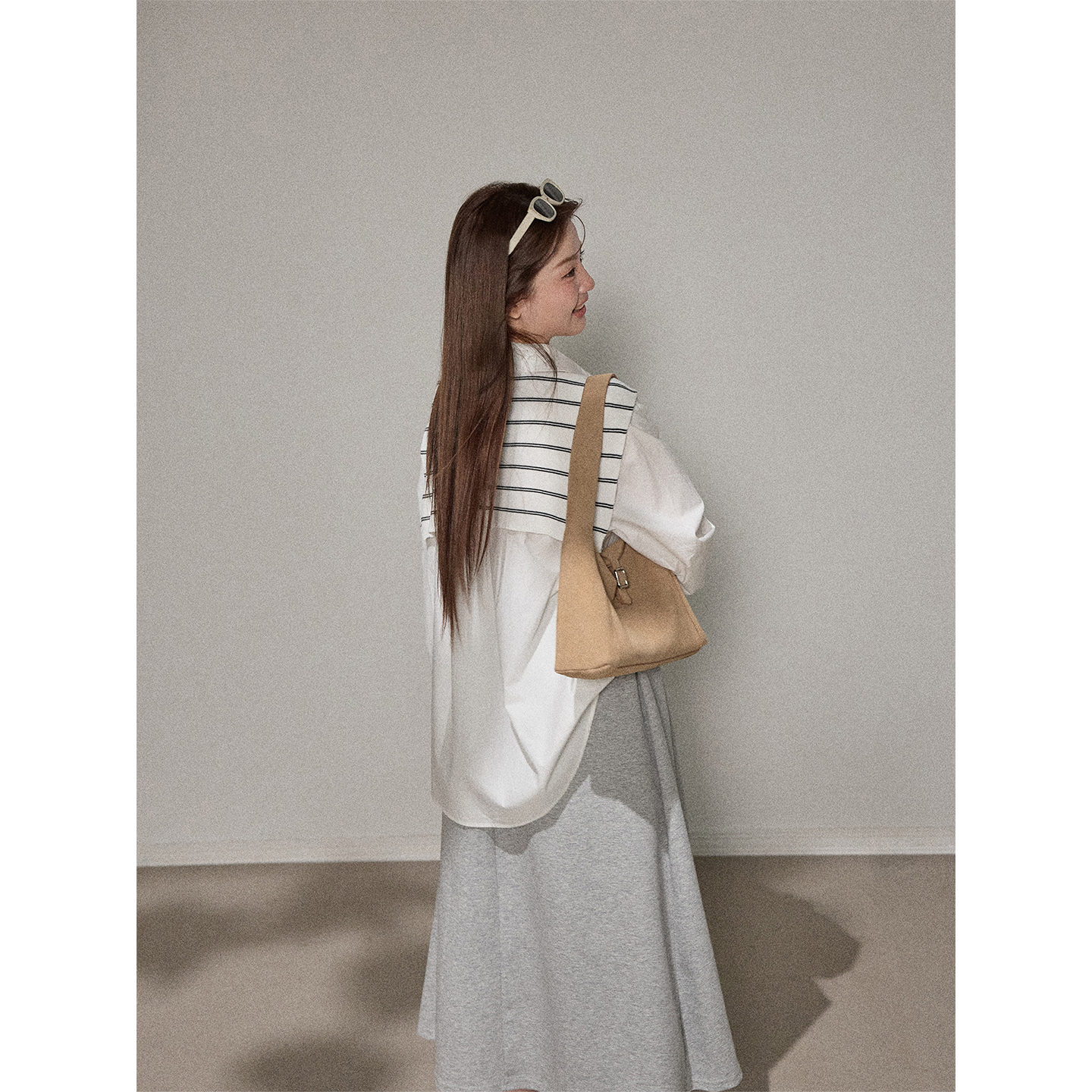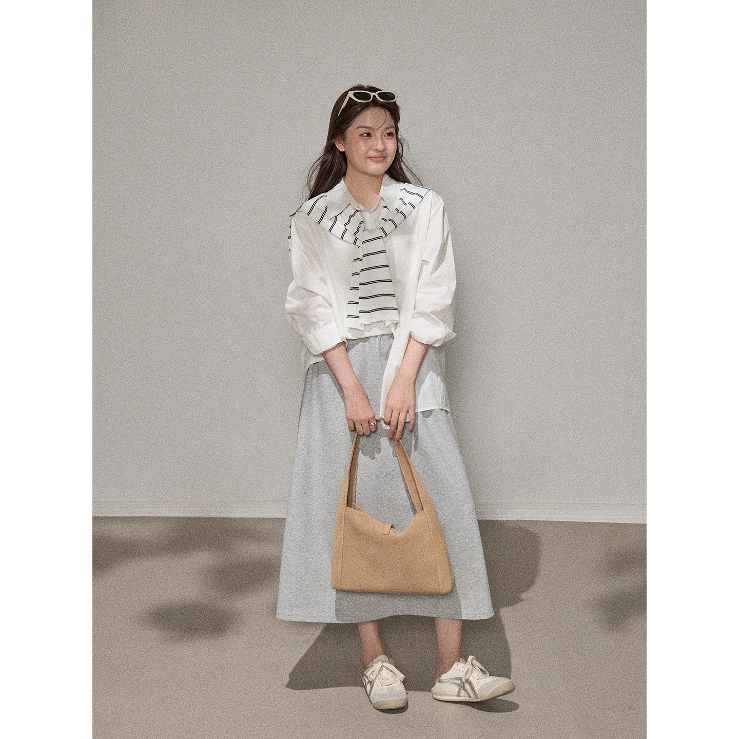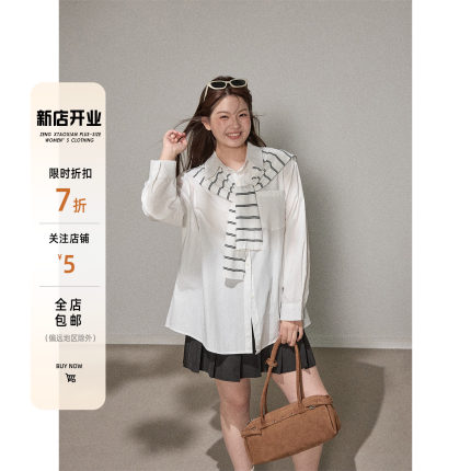 曾小咸大码女装韩系微胖mm白色长袖宽松衬衫带披肩上衣早秋氛围感