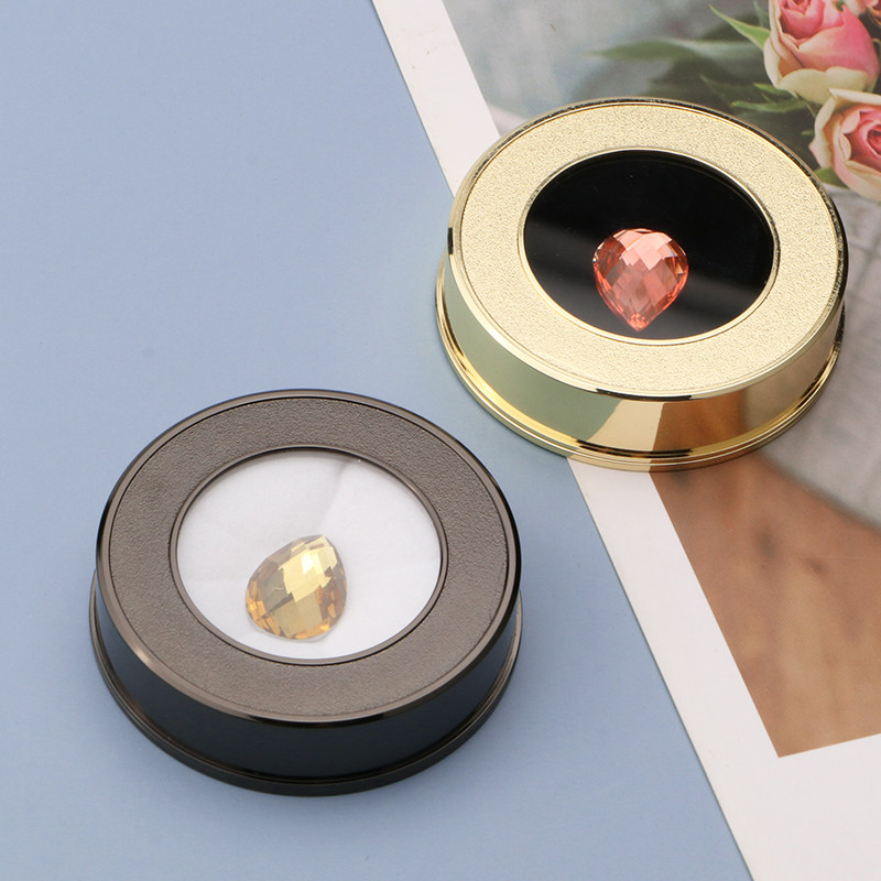 珠宝盒收纳盒金属圆形透明玻璃盖戒面裸石盒裸钻彩宝钻石展示盒子