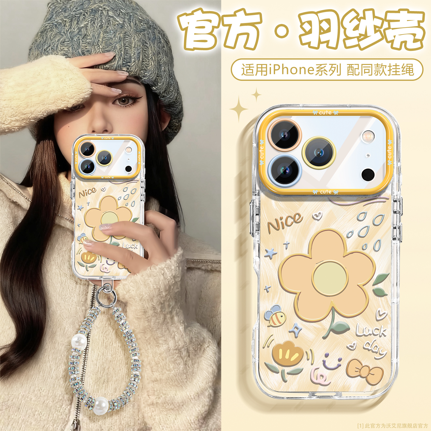 沃艾尼适用苹果17promax手机壳iPhone17新款16PM夏日花朵15透明硅胶14彩绘13全包plus小众高级12防摔11带挂绳
