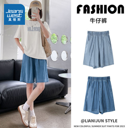 KC真维斯女装裤子2025春夏新款 潮流时尚百搭莱赛尔简约牛仔短裤