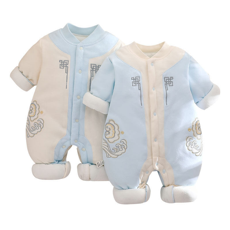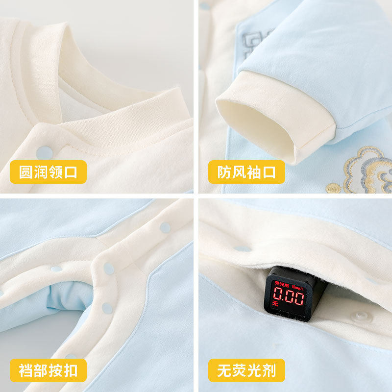 全新款式国风加厚秋冬季婴儿连体衣保暖夹棉a类宝宝哈衣纯棉爬服A