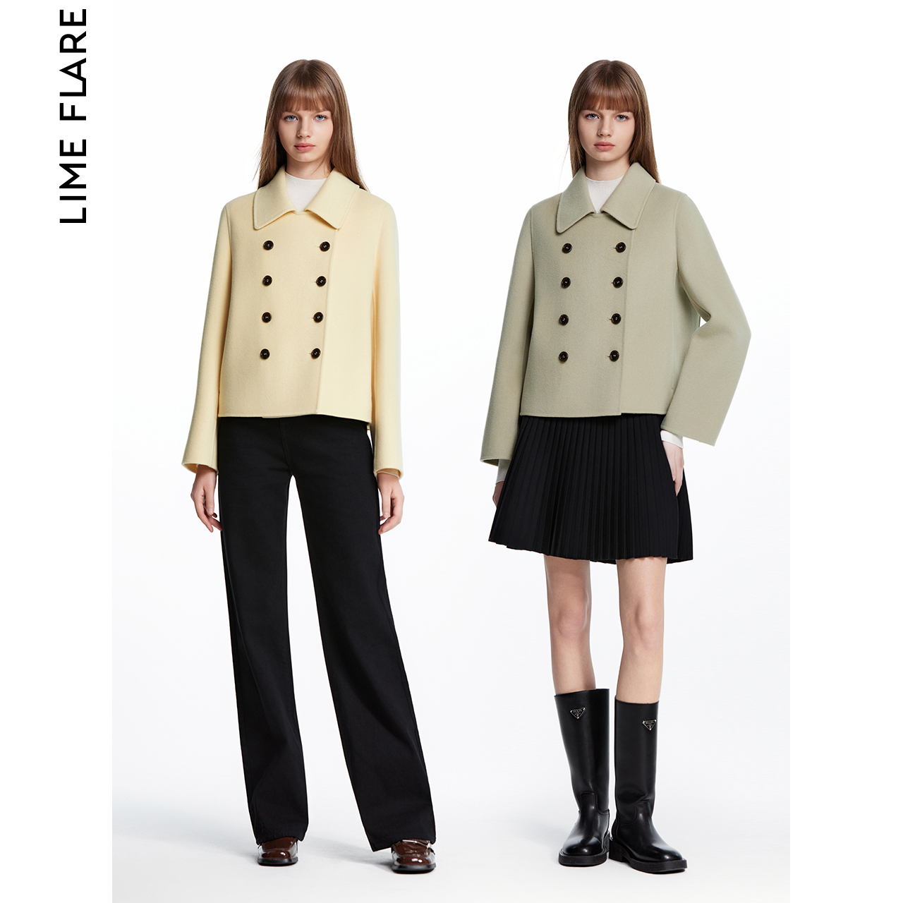 莱茵福莱尔纯绵羊毛双面呢外套双色廓形毛呢短款大衣