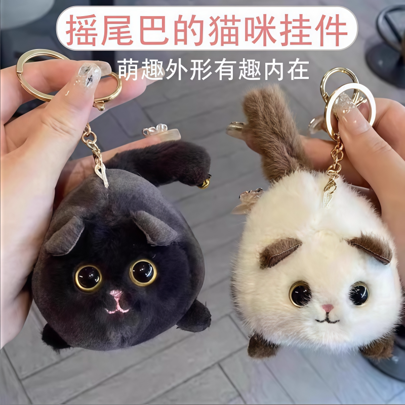 摇尾巴猫咪小白兔乐吉儿毛绒拉绳玩具玩偶公仔挂件钥匙扣迷你可爱