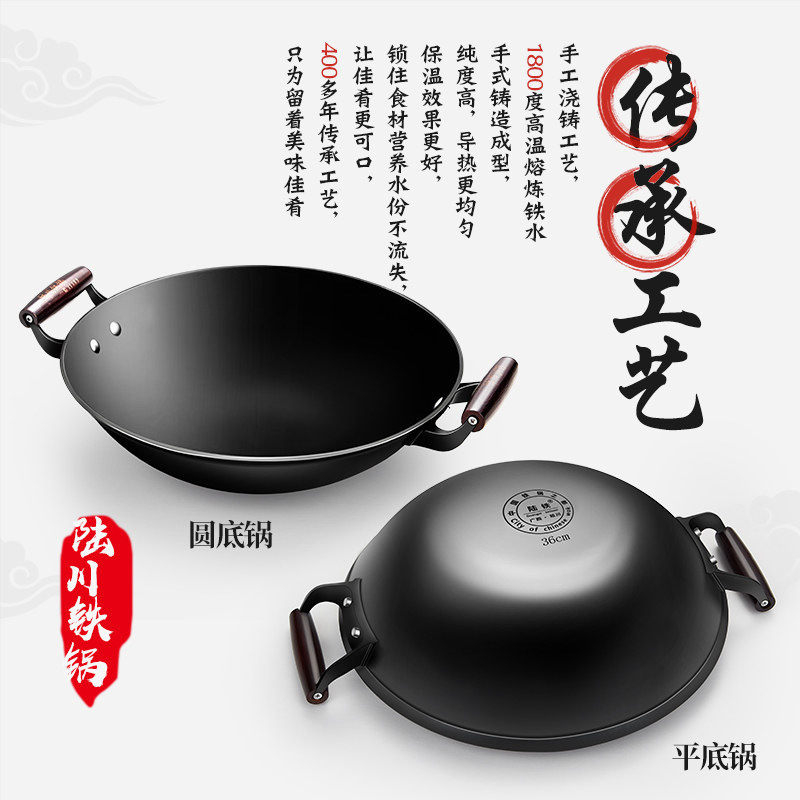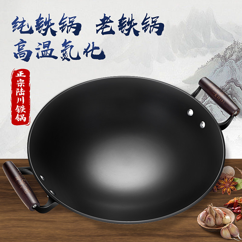 双耳老式铁锅生铁铸铁炒锅无涂层家用炒菜锅正宗陆川铁锅官方旗舰
