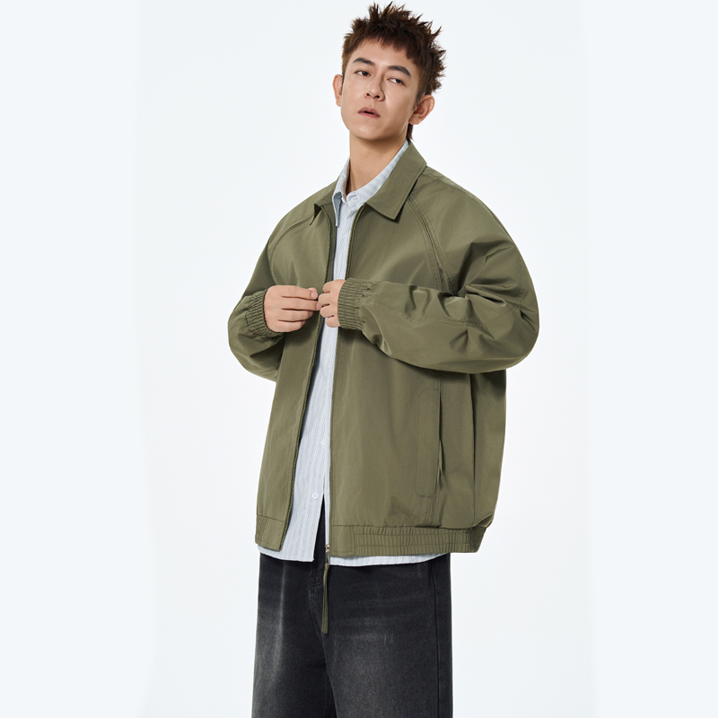 美式复古翻领外套男款春秋季2025新款潮宽松休闲短款工装夹克上衣