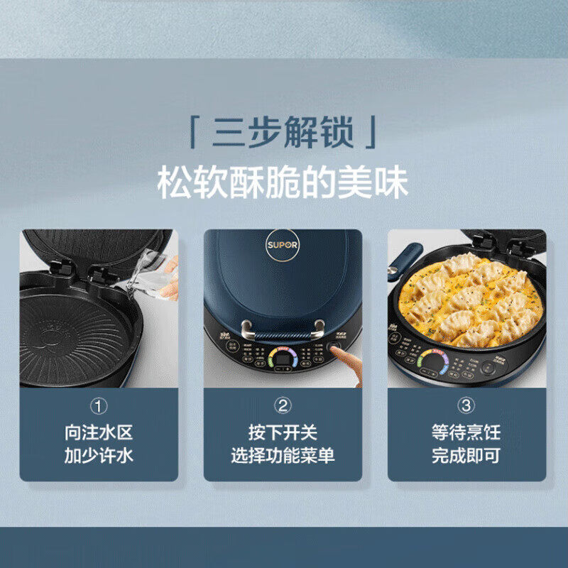 苏泊尔JD30RQ09电饼铛可拆洗双面加热薄饼煎烤机加深烤盘