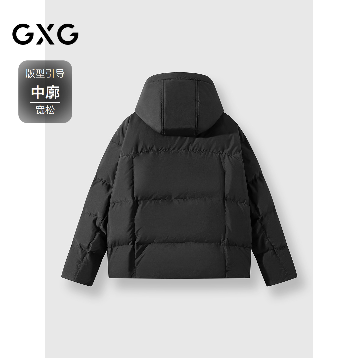 25冬季新品 GXG男装黑色抽绳连帽短款防风袖羽绒服鸭绒外套