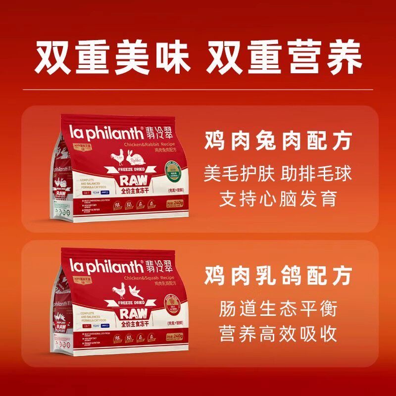 翡冷翠主食生骨肉鸡肉乳鸽兔肉配方高蛋白全价猫咪通用型猫粮冻干